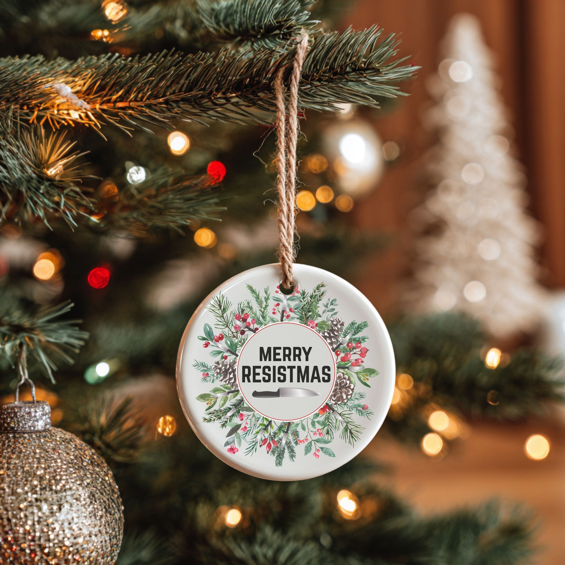 Merry Resistmas Ceramic Ornament | Activist Holiday Decor