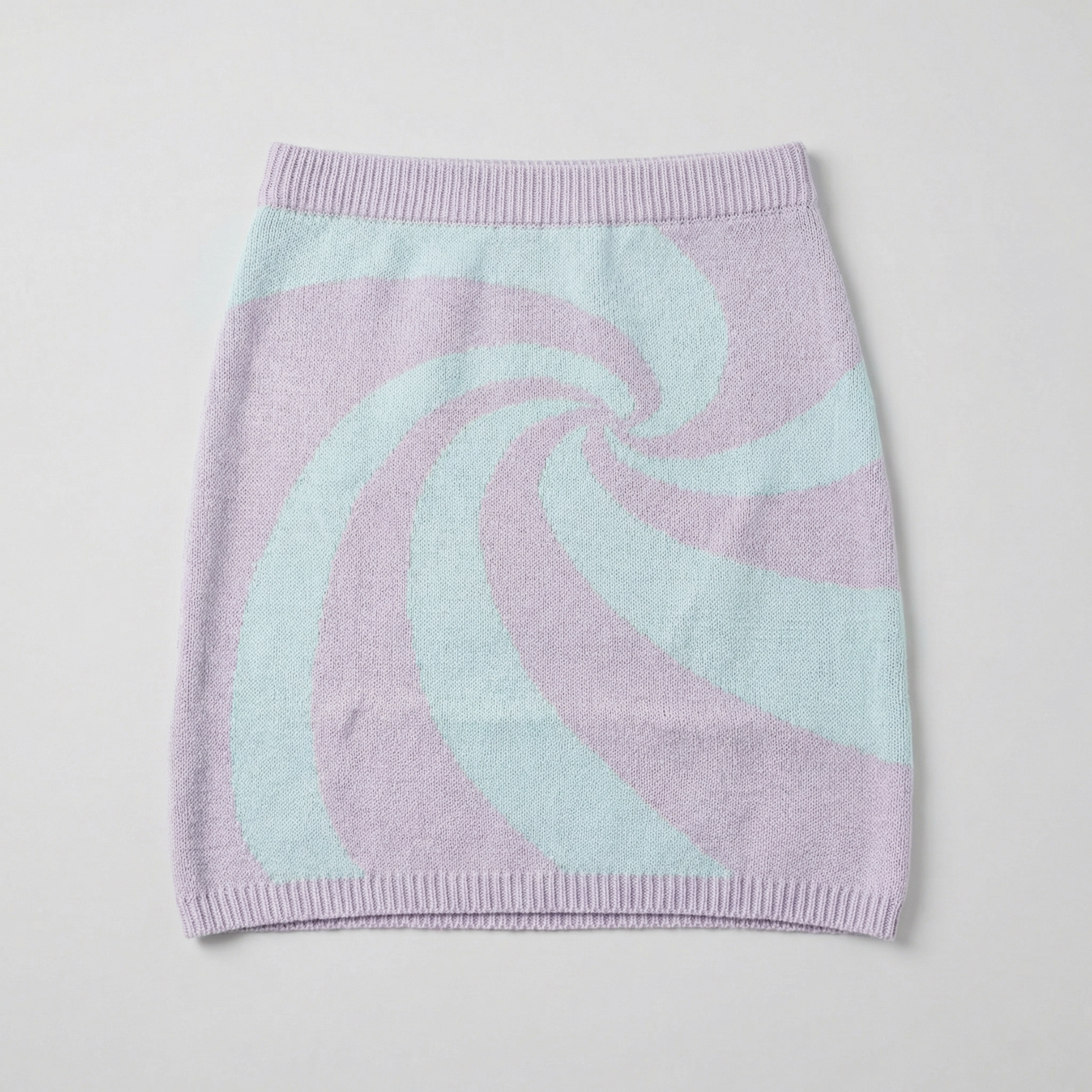 Mod Swirl Sweater Mini Skirt | Lilac & Pale Blue Knit Skirt with Intarsia Design (SM–XL)Low stock: 9 left