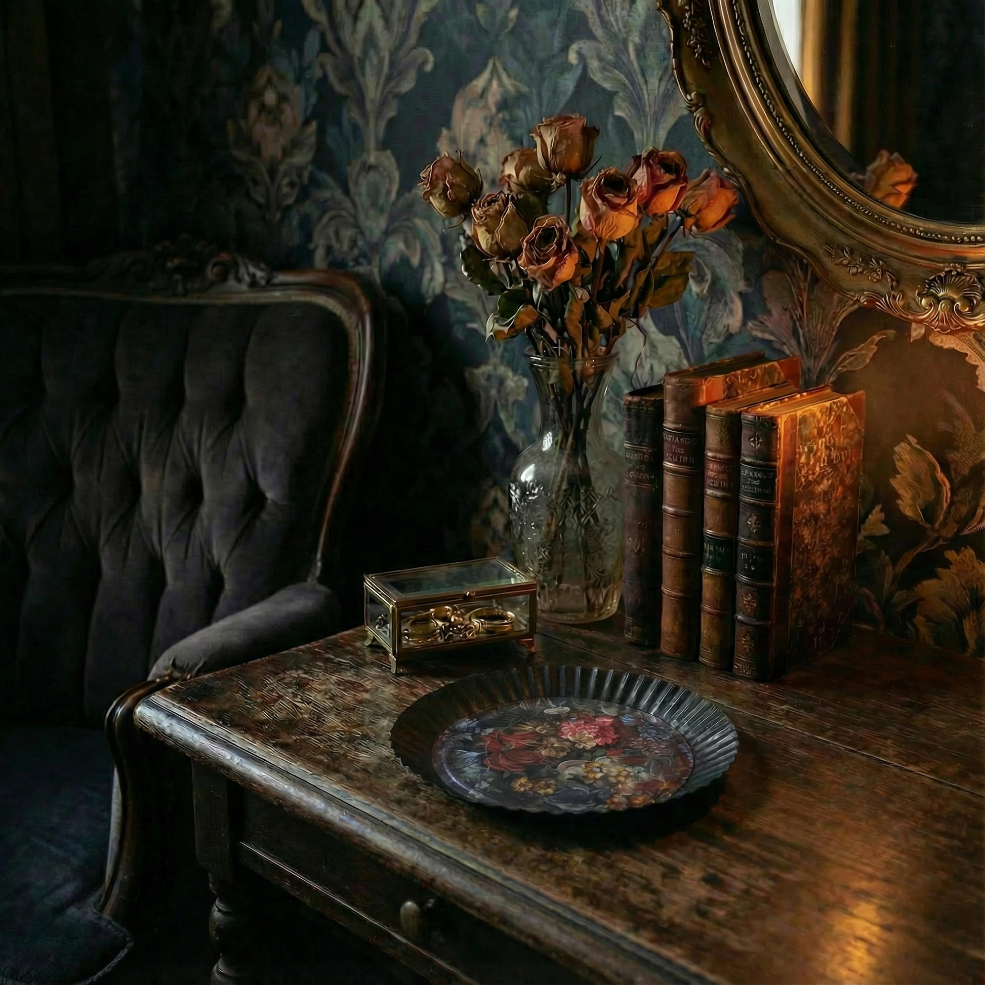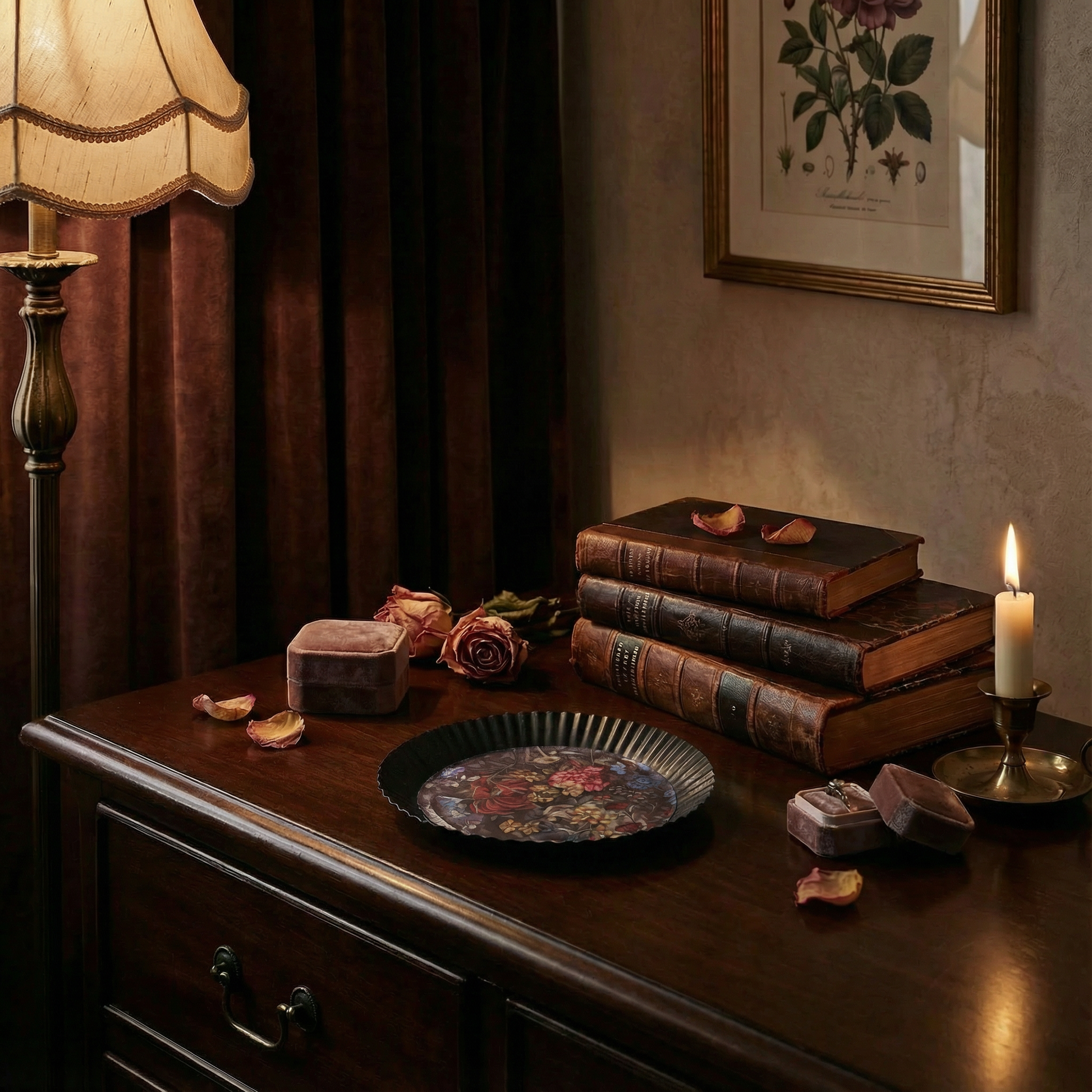 - Themes: dark botanical, moody floral, dark academia, goth