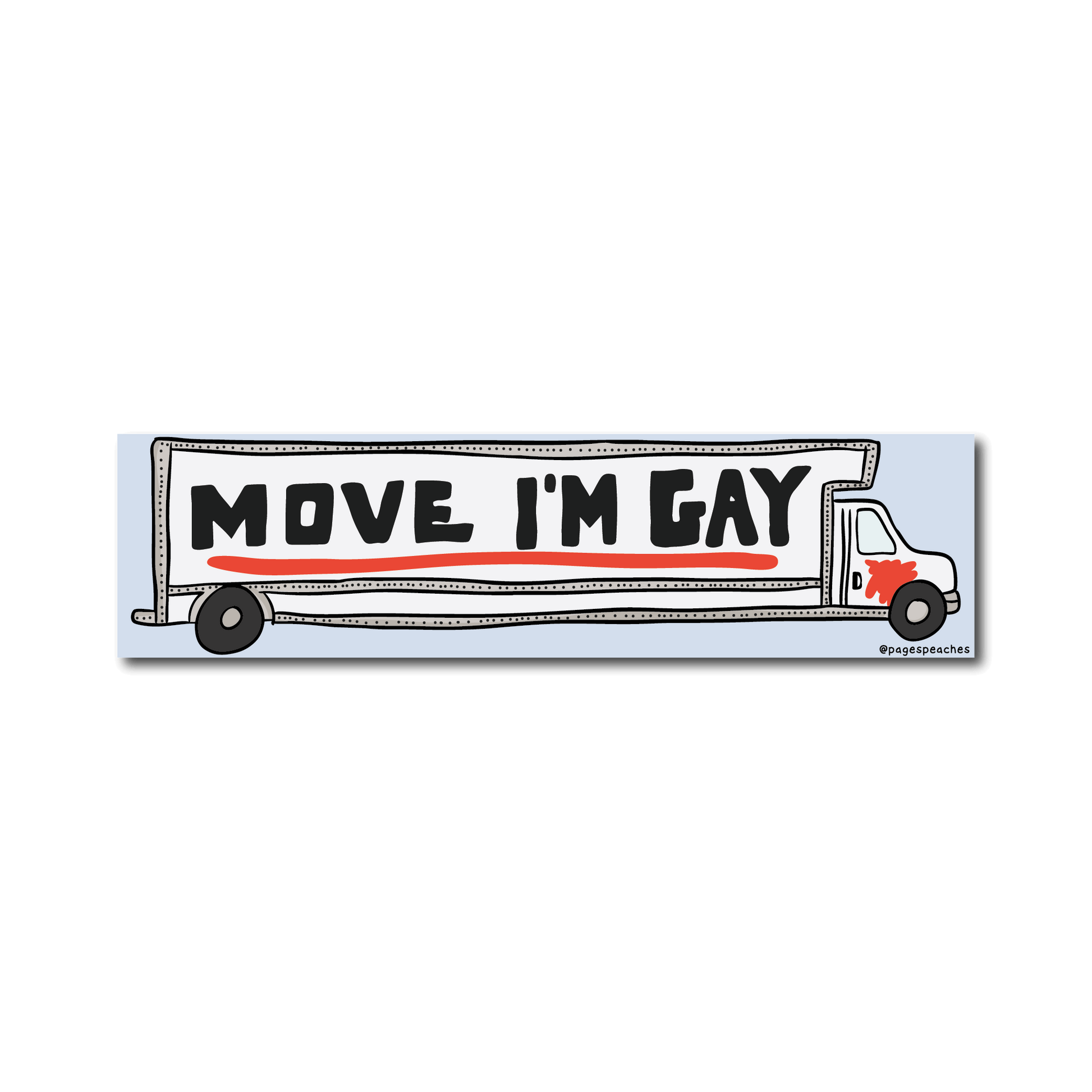 Move I’m Gay Bumper Sticker | Funny LGBTQ Pride Car Decal | 3'' x 11.5''
