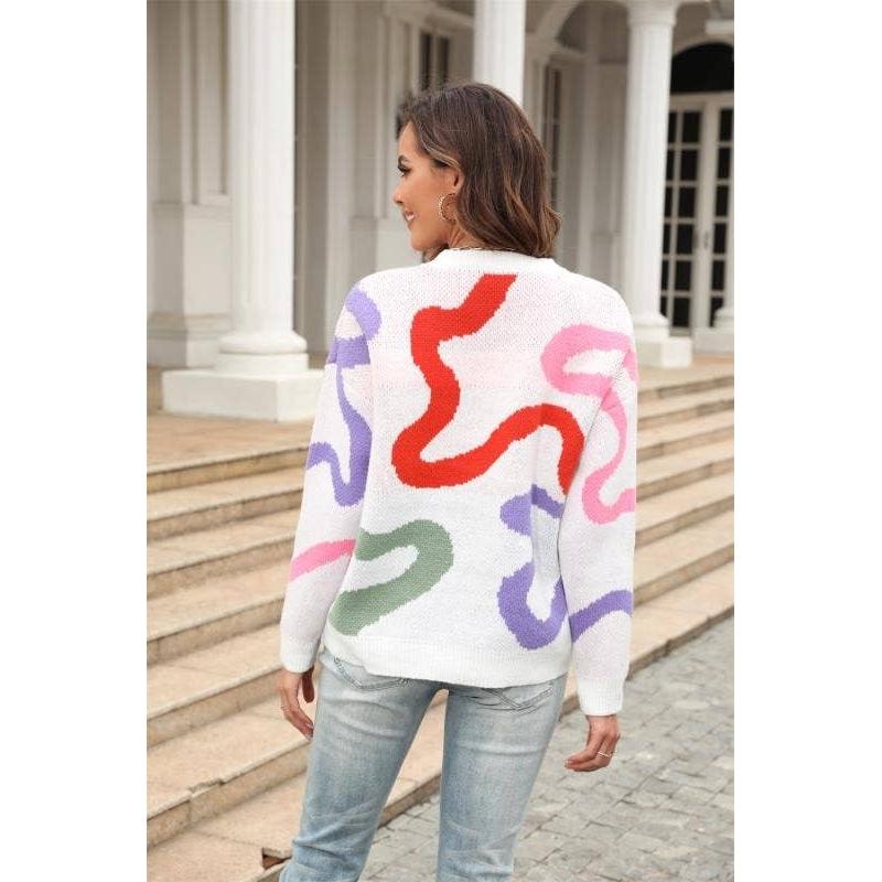 Wild '80s Multi Color Swirl Sweater | Women’s Novelty Knitwear with Bold Intarsia Design [SM–XL]Low stock: 1 left