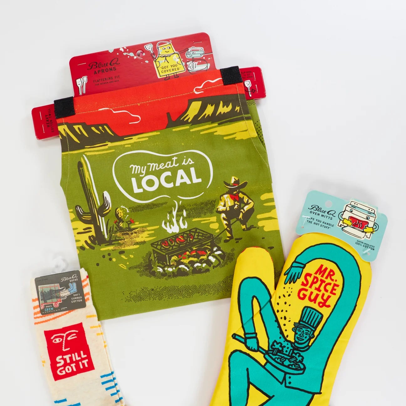 My Meat Is Local Funny Cooking and BBQ Apron Unisex 2 Pockets Adjustable Strap 100% Cotton | BlueQ at GetBullish | Father's Day Gift