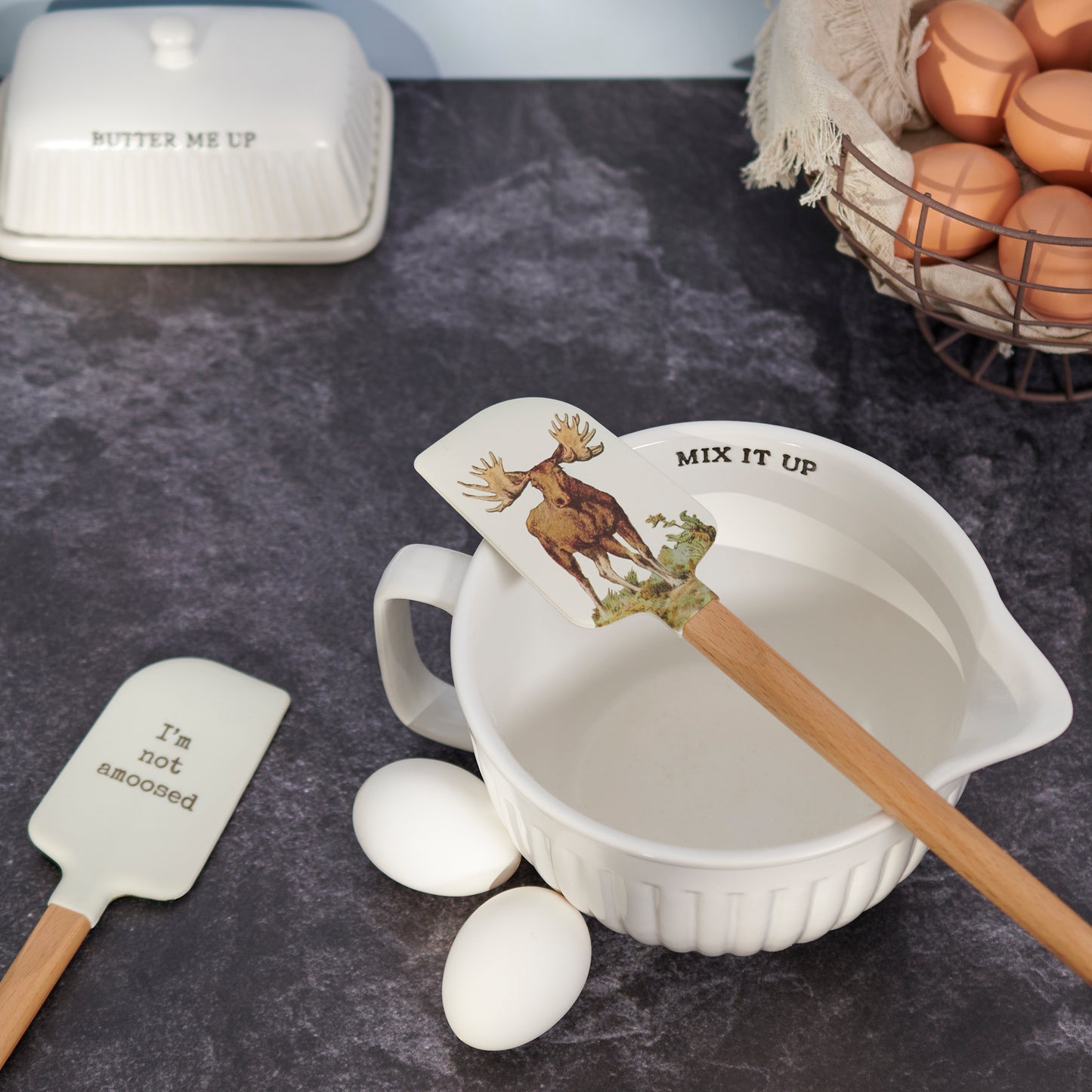 I'm Not Amoosed Double-Sided Silicone Spatula | Vintage Art Moose Wooden Handle Turner Flipper