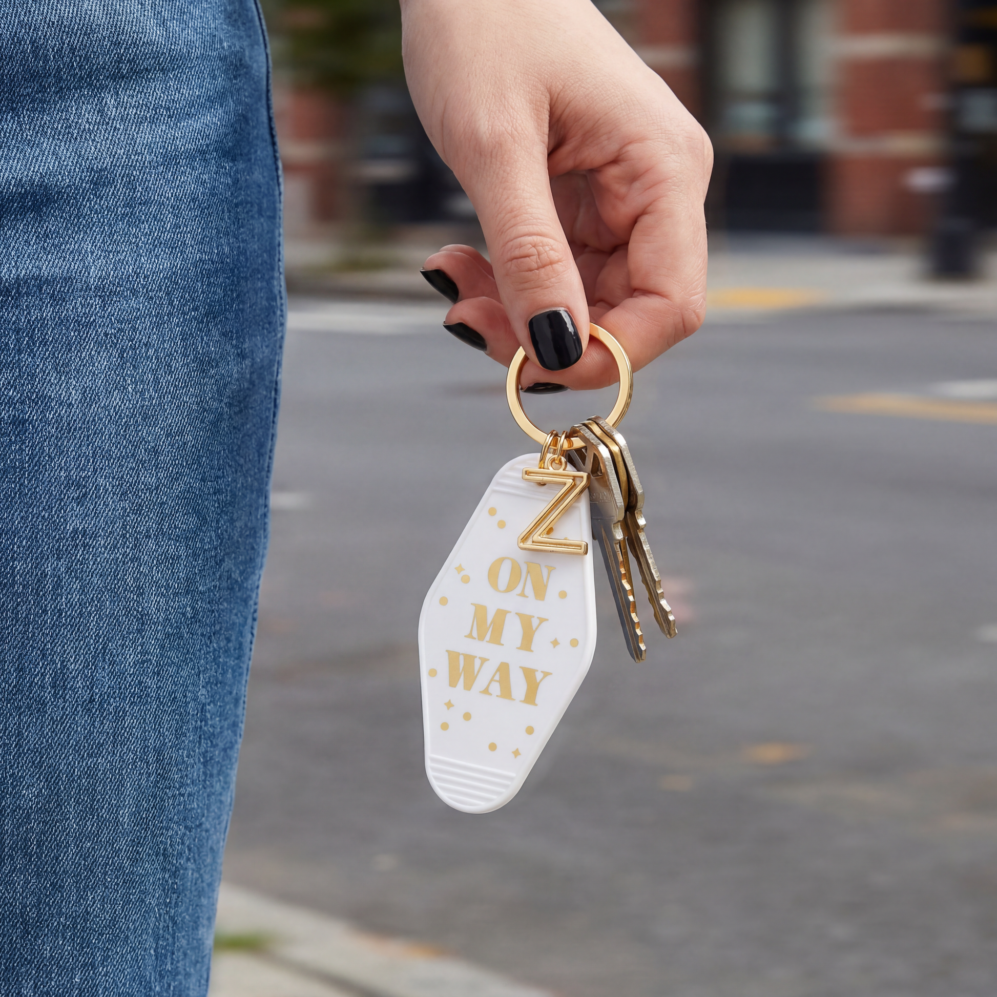 On My Way White Motel Keychain Key Tag | Acrylic64 in stock