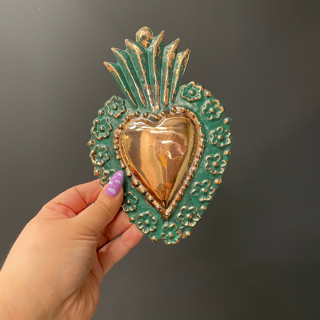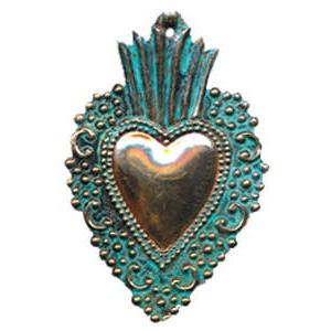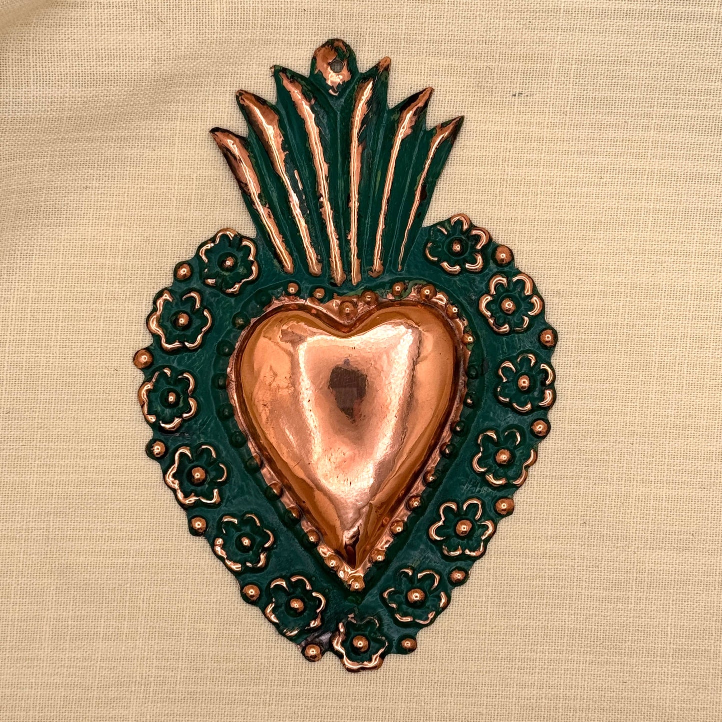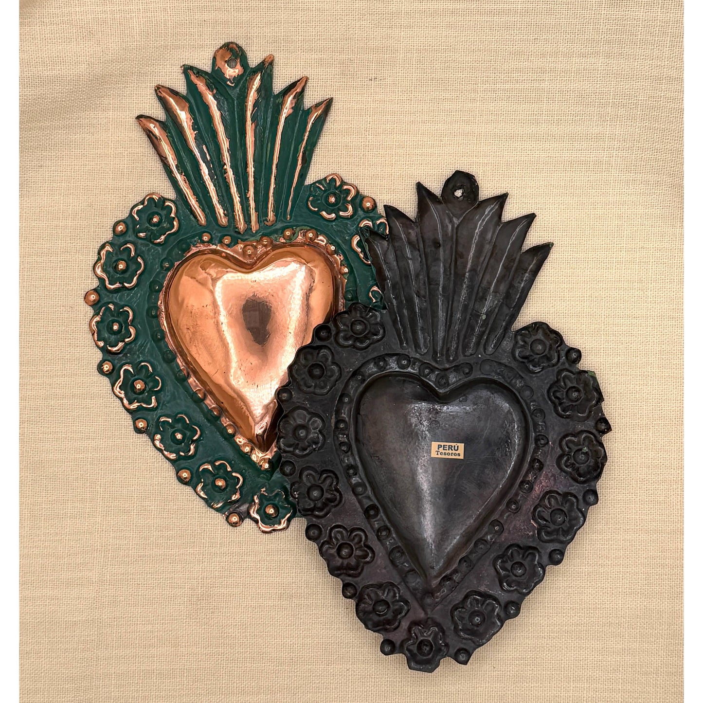 7.5" x 5" Oxidized Copper Heart Milagro | Hand Made in Peru Heart-shaped Ornament Tin Charm