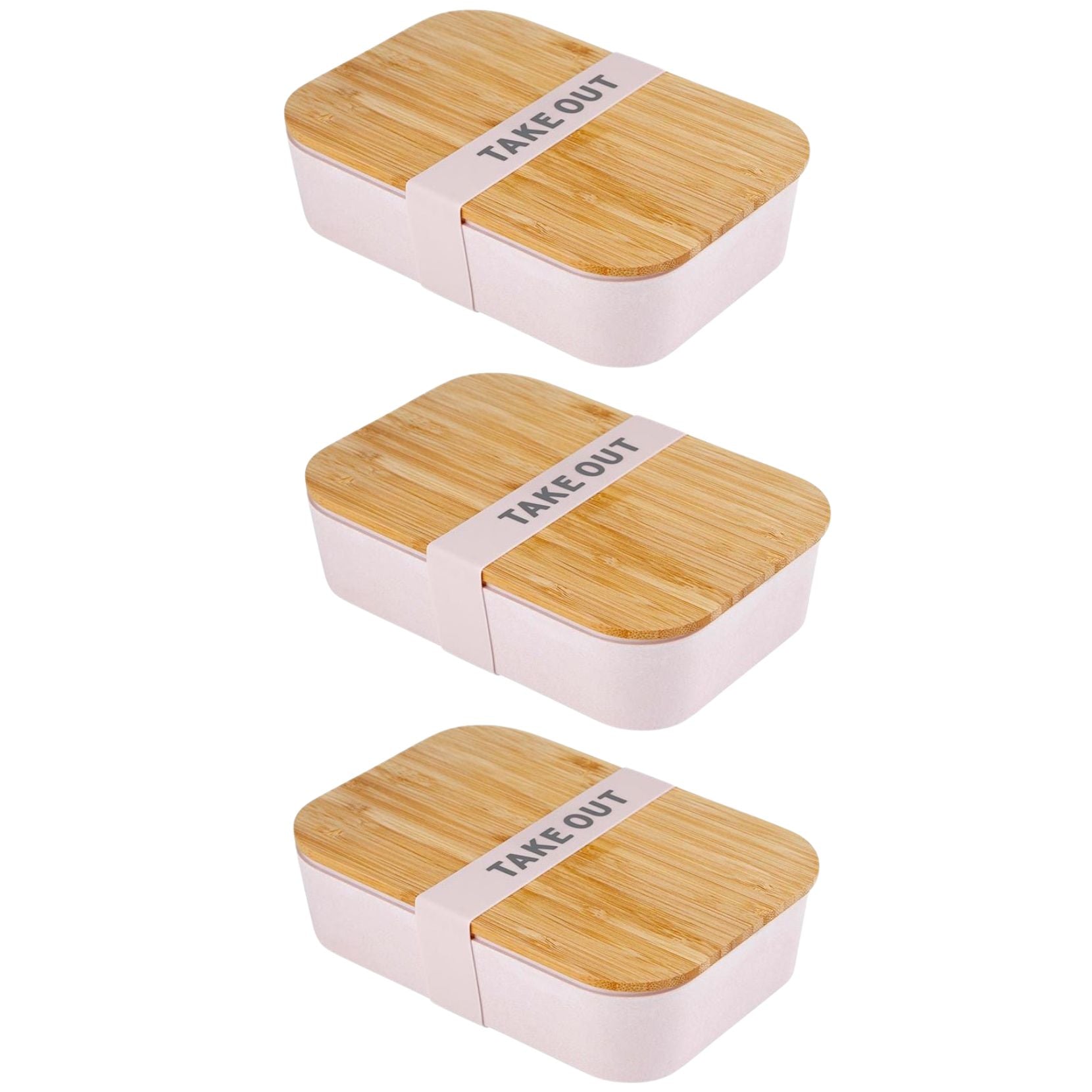 Pack of 3 Take Out Bamboo Lunch Box in Blush Pink | Eco-Friendly and Sustainable | 7.5" x 5" x 2"