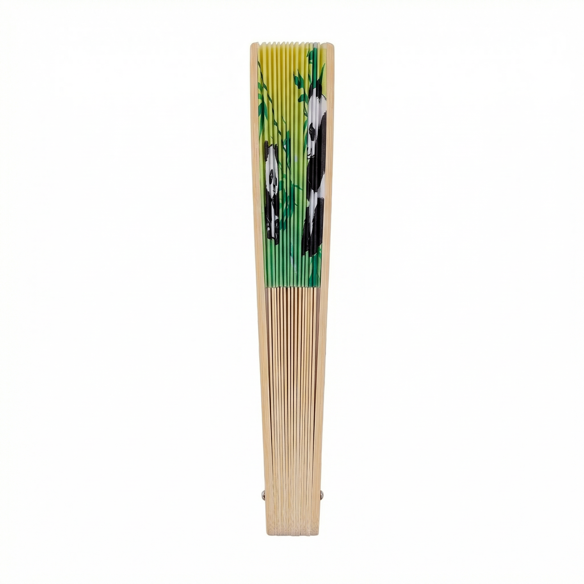 Panda Bamboo Design Paper Folding Fan | 10" Hand Fan with Wooden Frame