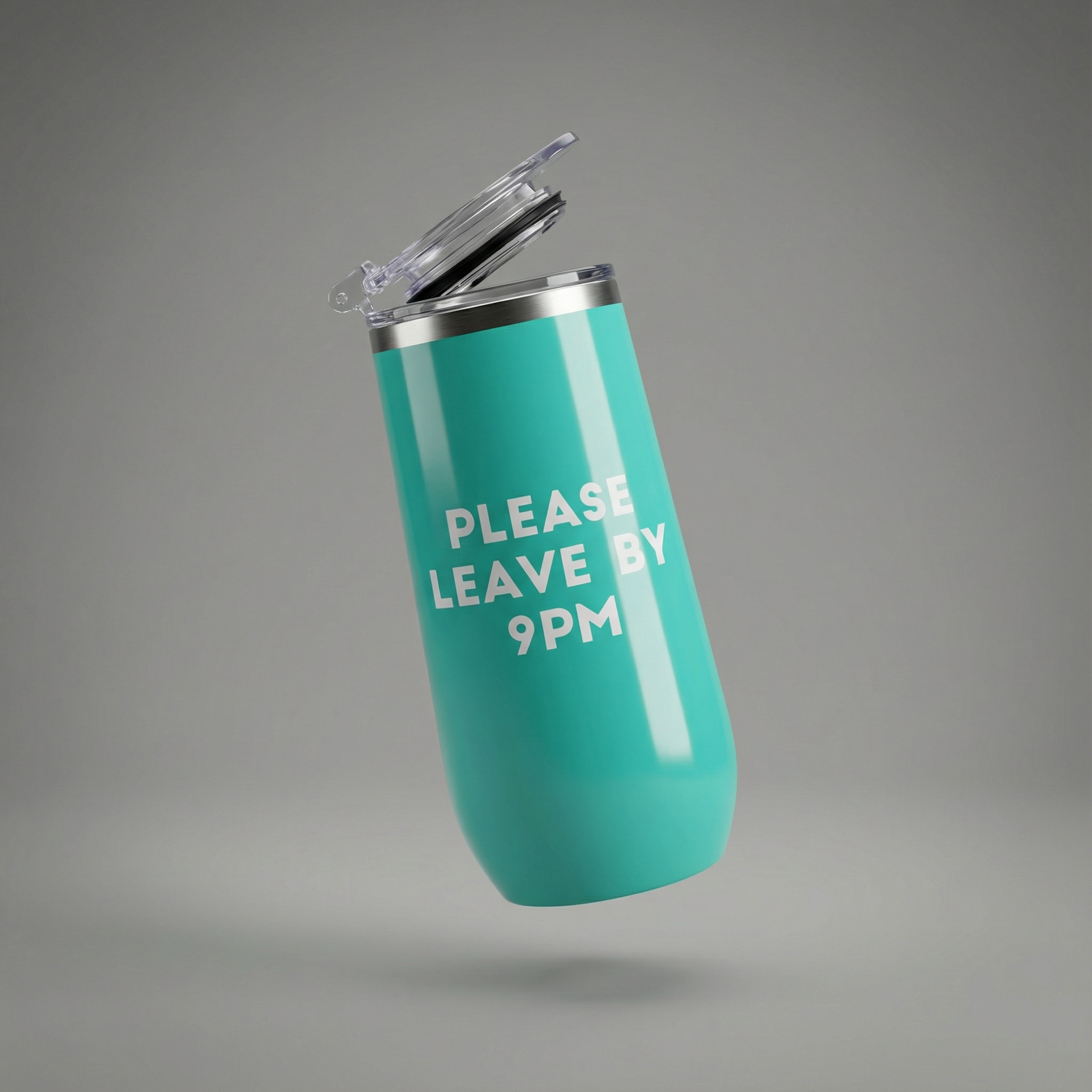 Please Leave by 9PM Champagne Tumbler in Teal | Stainless Steel To-Go CupLow stock: 9 left