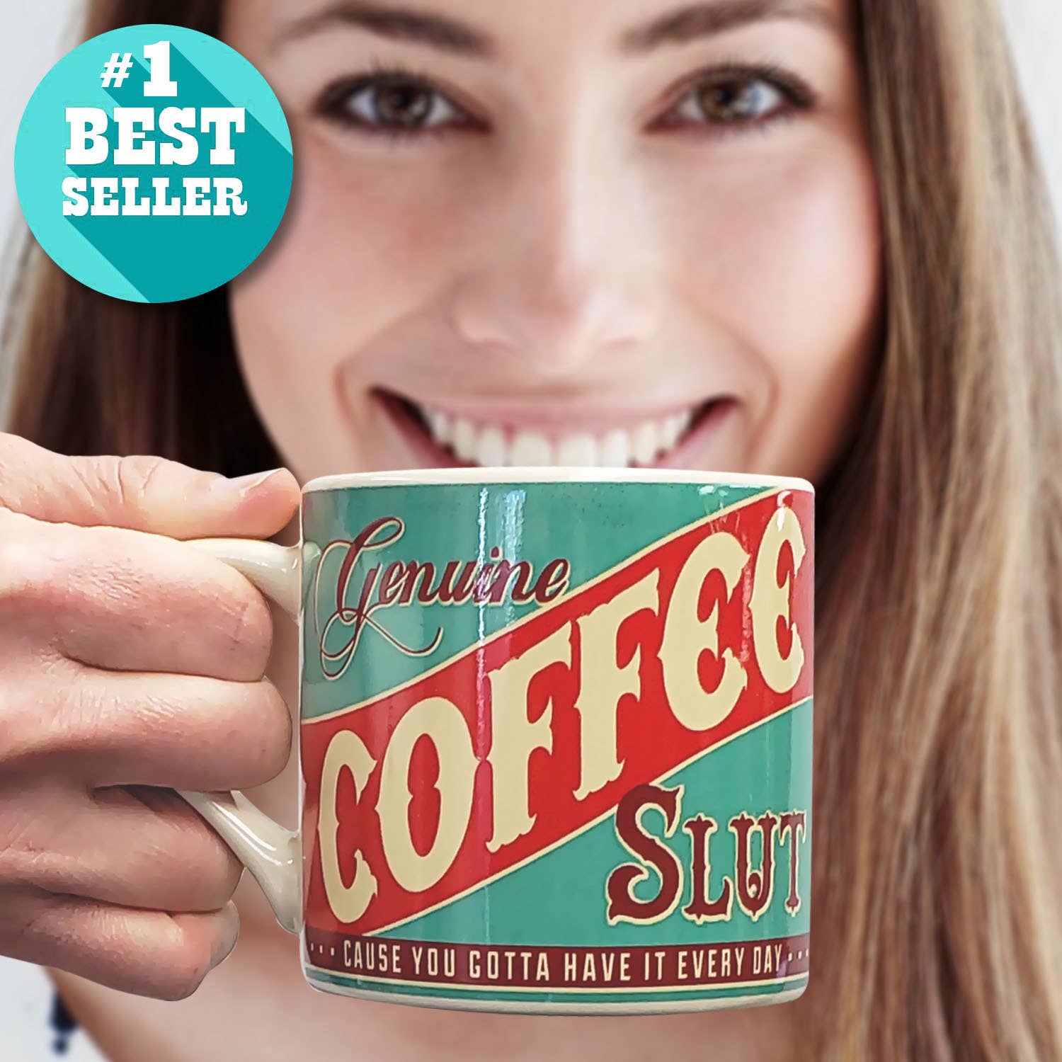 Genuine Coffee Slut Porcelain Mug Vintage Style | Wrap-around Design Ceramic Coffee Tea Cup | 12ozLow stock: 8 left