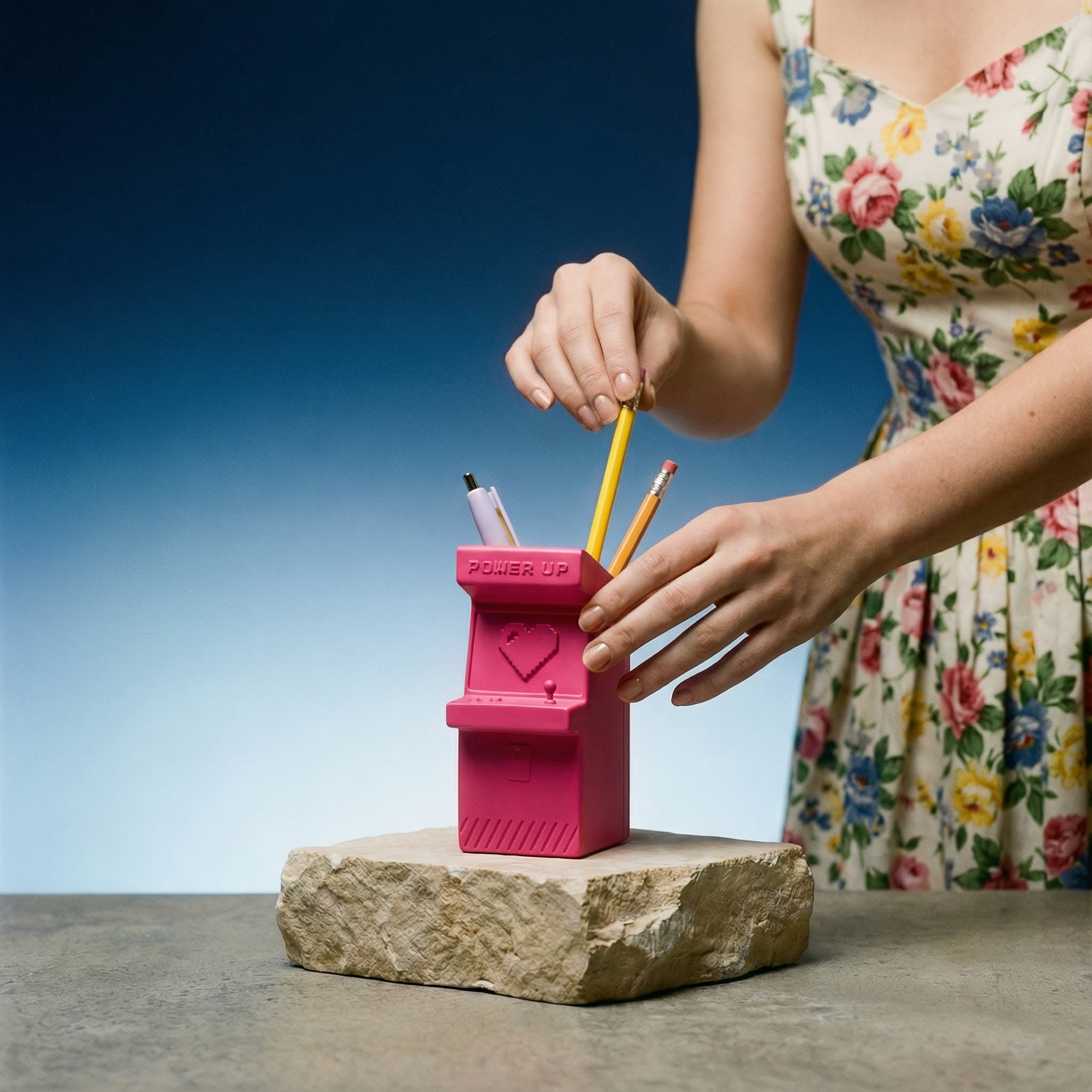 Power Up Retro Arcade Style Pen Pot | Pencil Cup in Hot Pink
