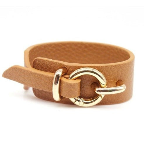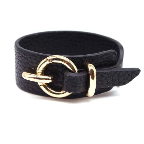 Gold Buckle Faux Leather Cuff Bracelet (5 Color Options)