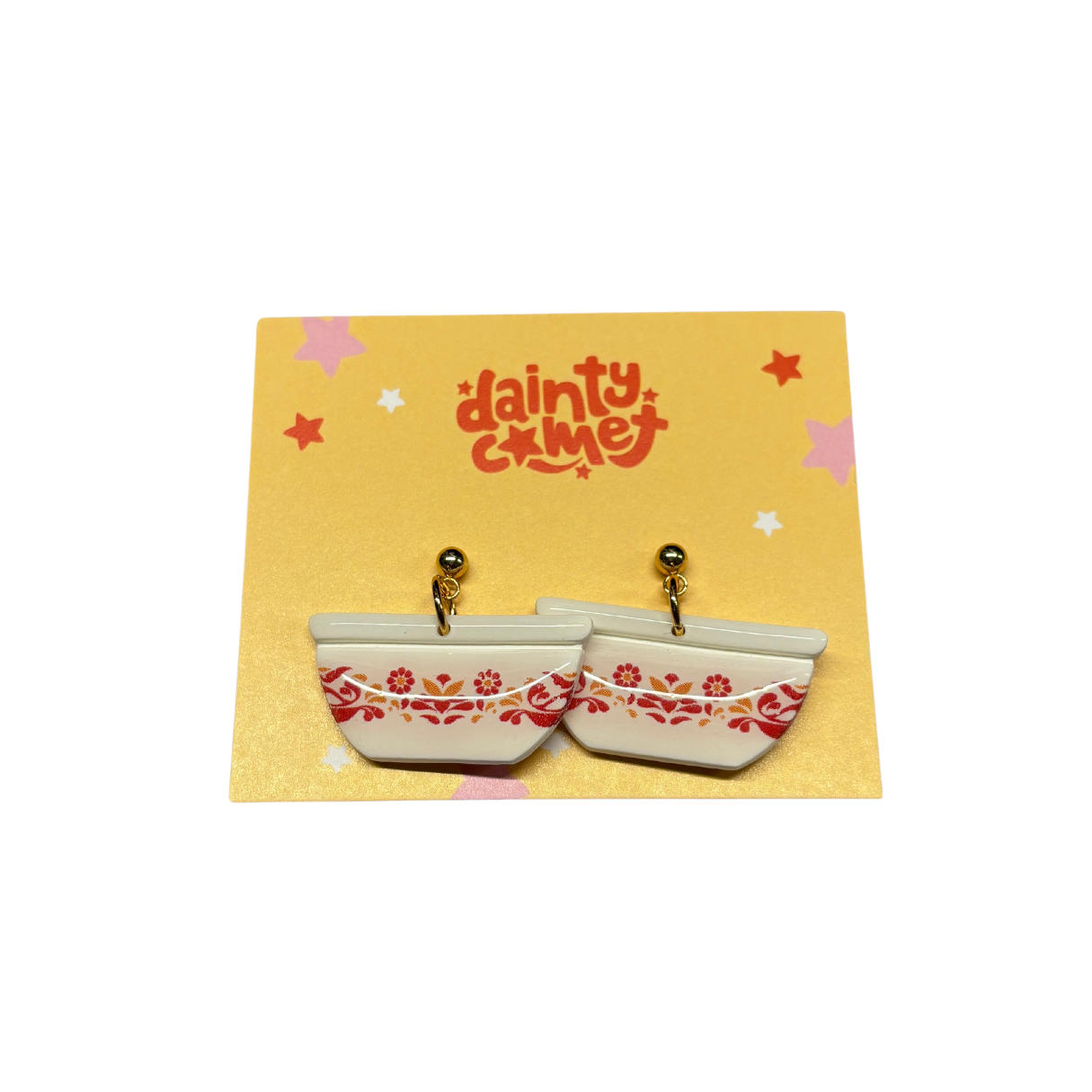 Pyrex collectors will rave over the chance to own an artist's interpretation of historic Pyrex prints on handmade clay earrings!