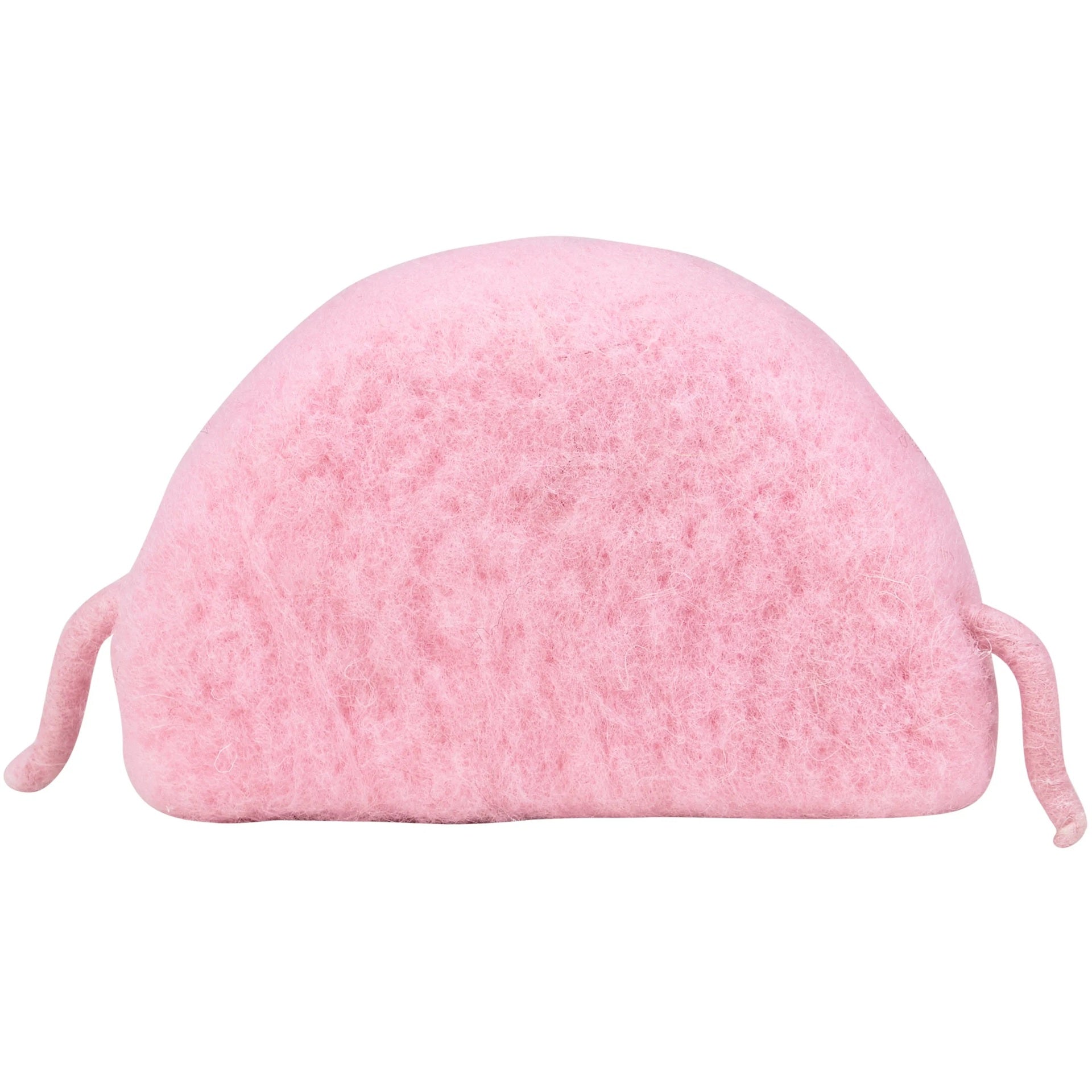 A felt critter displaying a happy pastel rainbow design that coordinates well with décor.