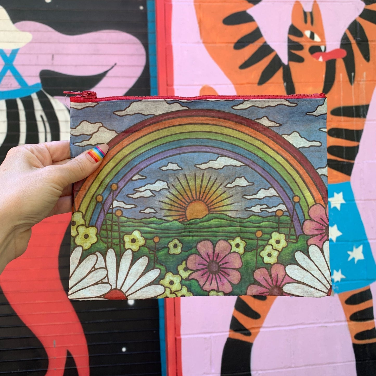 Rainbow and Sunrise Double-sided Zipper Pouch | Recycled Material Wallet Organizer | 9.50" x 7"20 in stock