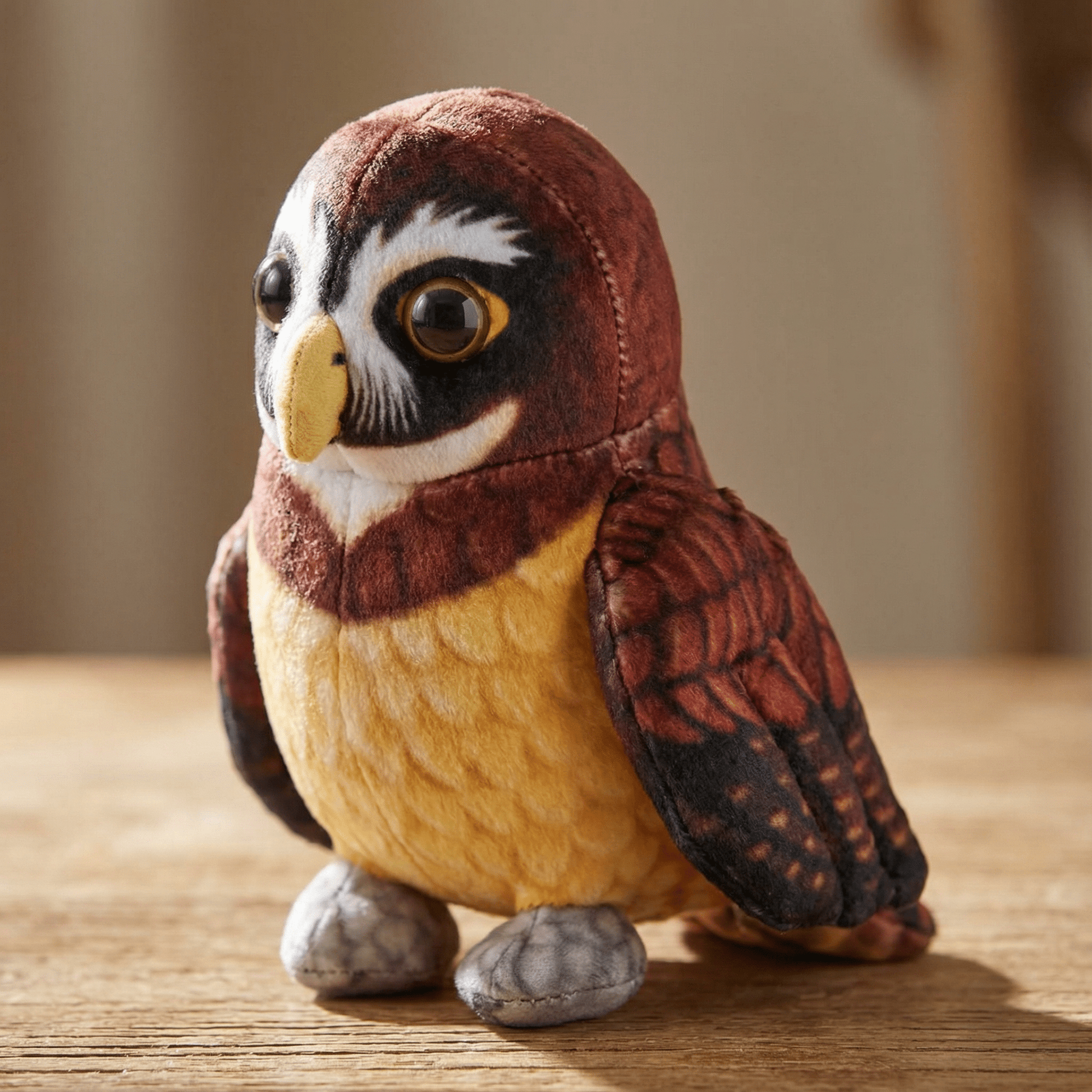 Crafted with care, this plush is made from eco-friendly recycled materials, embodying our dedication to rainforest preservation. Its lifelike design captures the allure of the spectacled owl, known for its distinctive facial markings and silent flight.