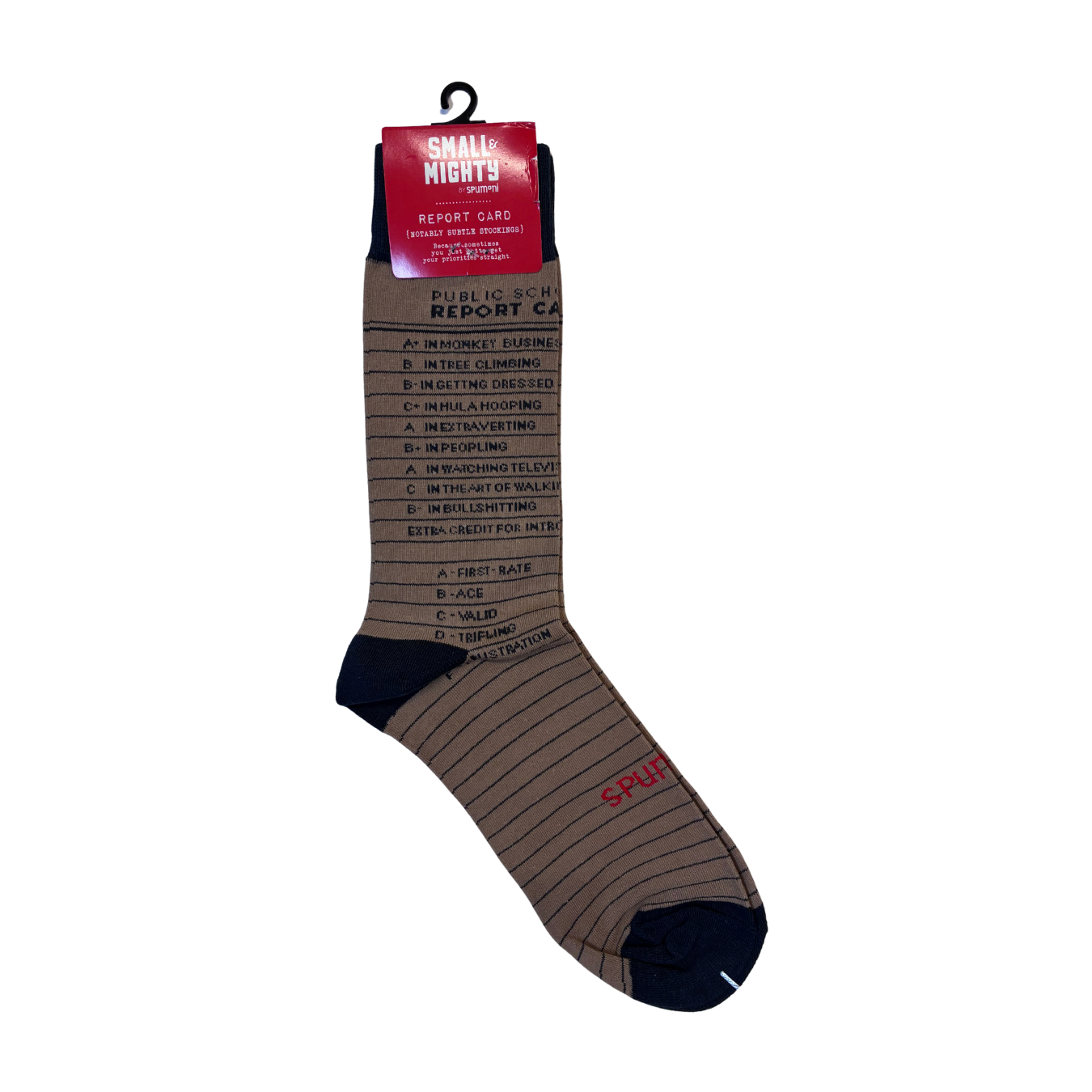 Retro school report card themed socks are so cute for anyone who's still a kid at heart. Vintage report card design on parchment colored background.