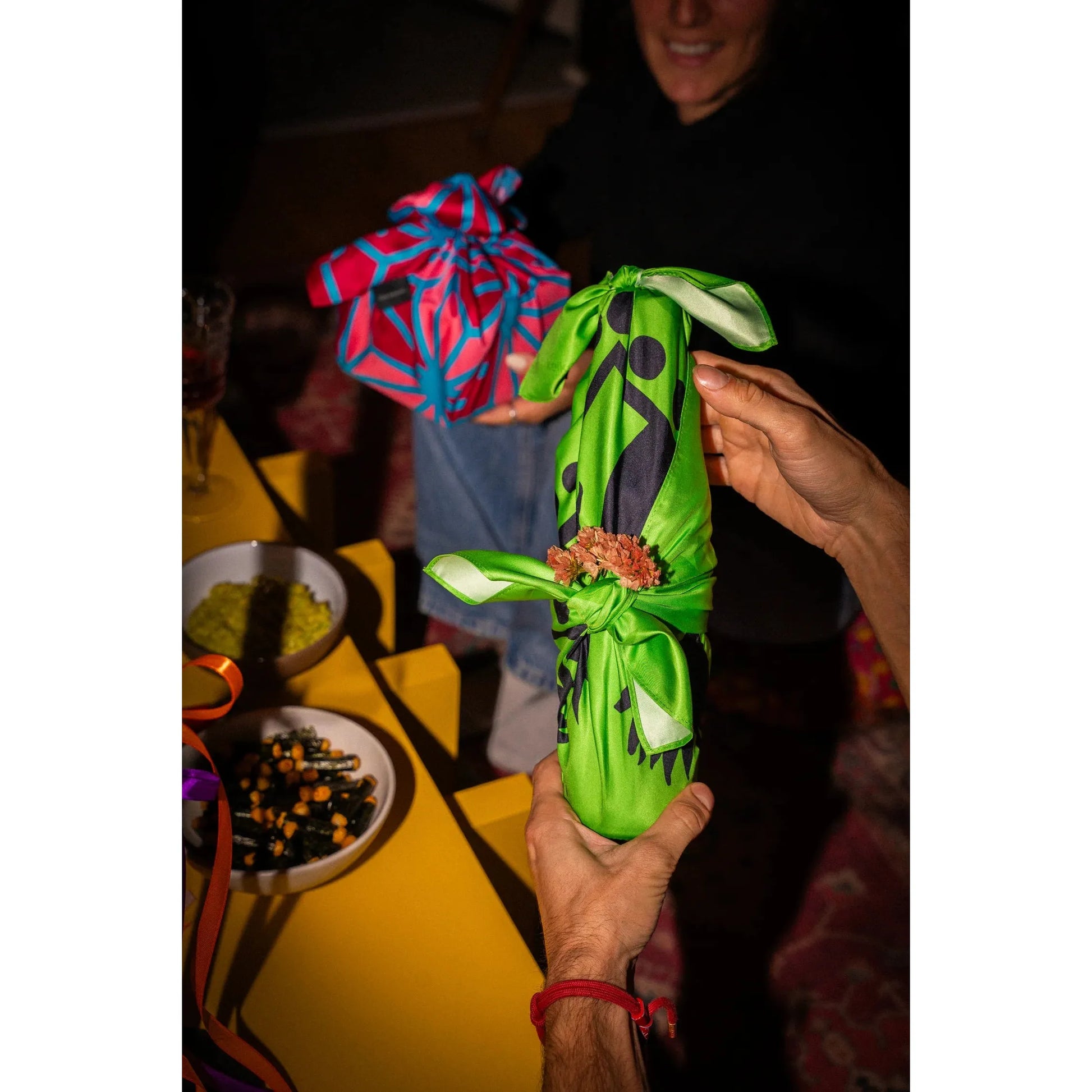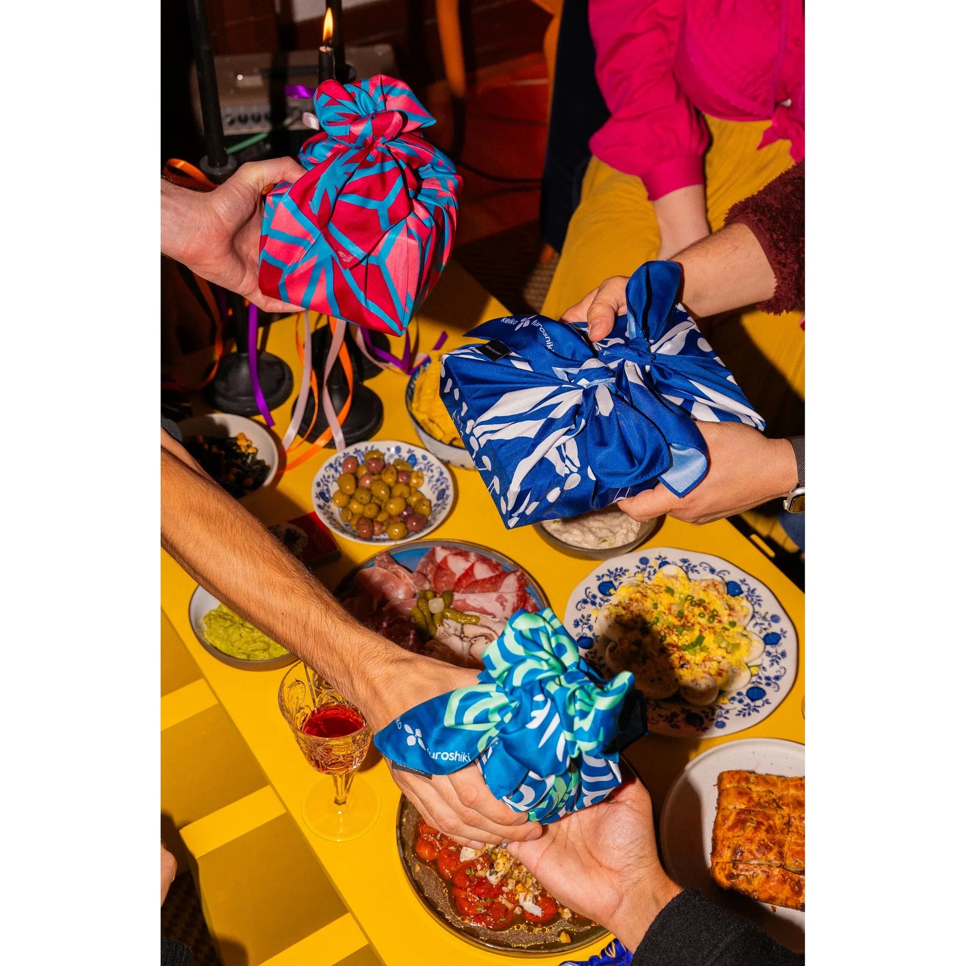 Pro tip, Youtube has lots of furoshiki-tying tutorials if you want to tie yours authentically, but also, everything looks good wrapped in pretty fabric no matter how you do it!