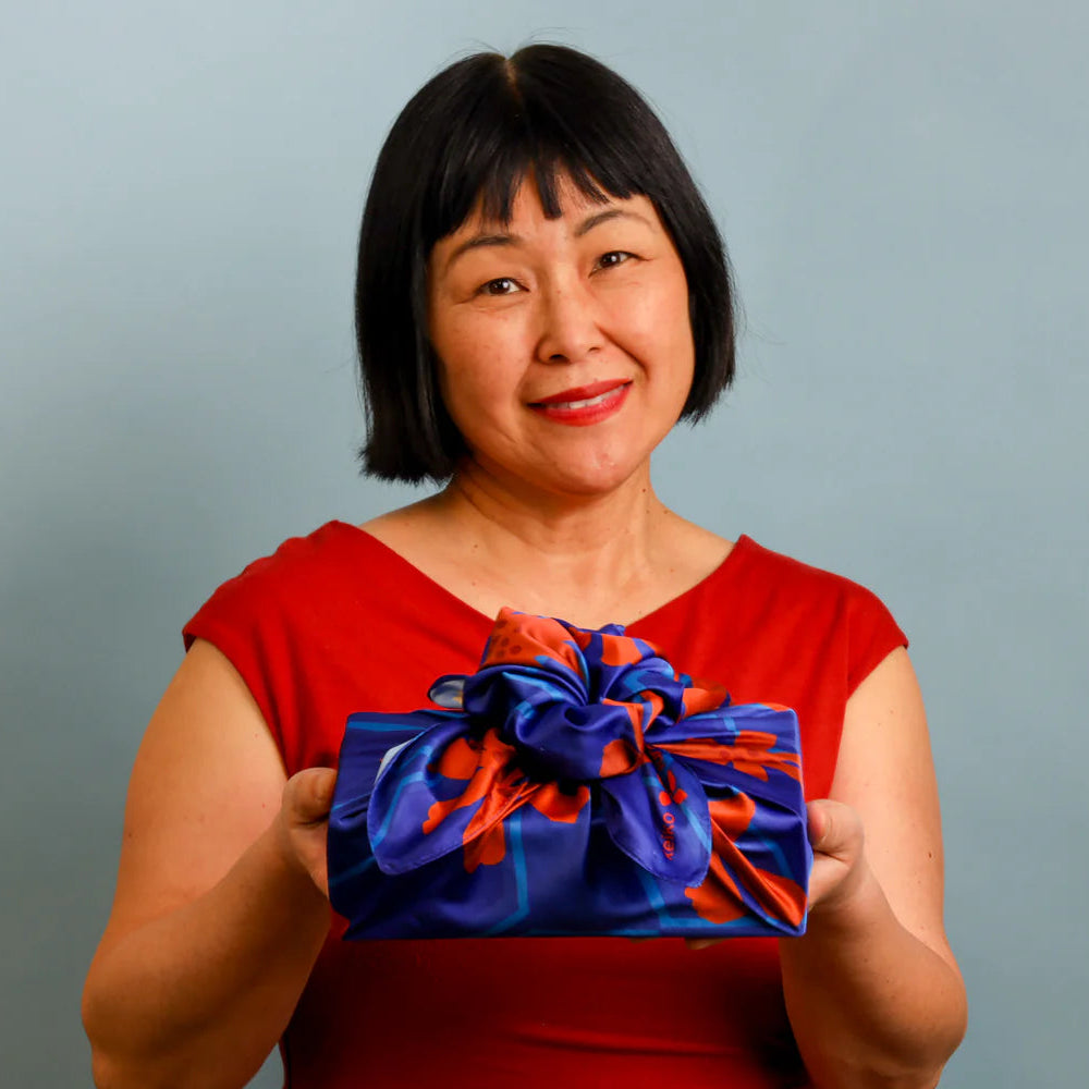 Keiko Furoshiki reusable fabric wrapping is a great way to wrap a gift, transport your lunch, or add color to an outfit. Perfect wrapped around a bento box every day, or to add to a gift by wrapping the gift in beautiful, reusable fabric gift wrap.