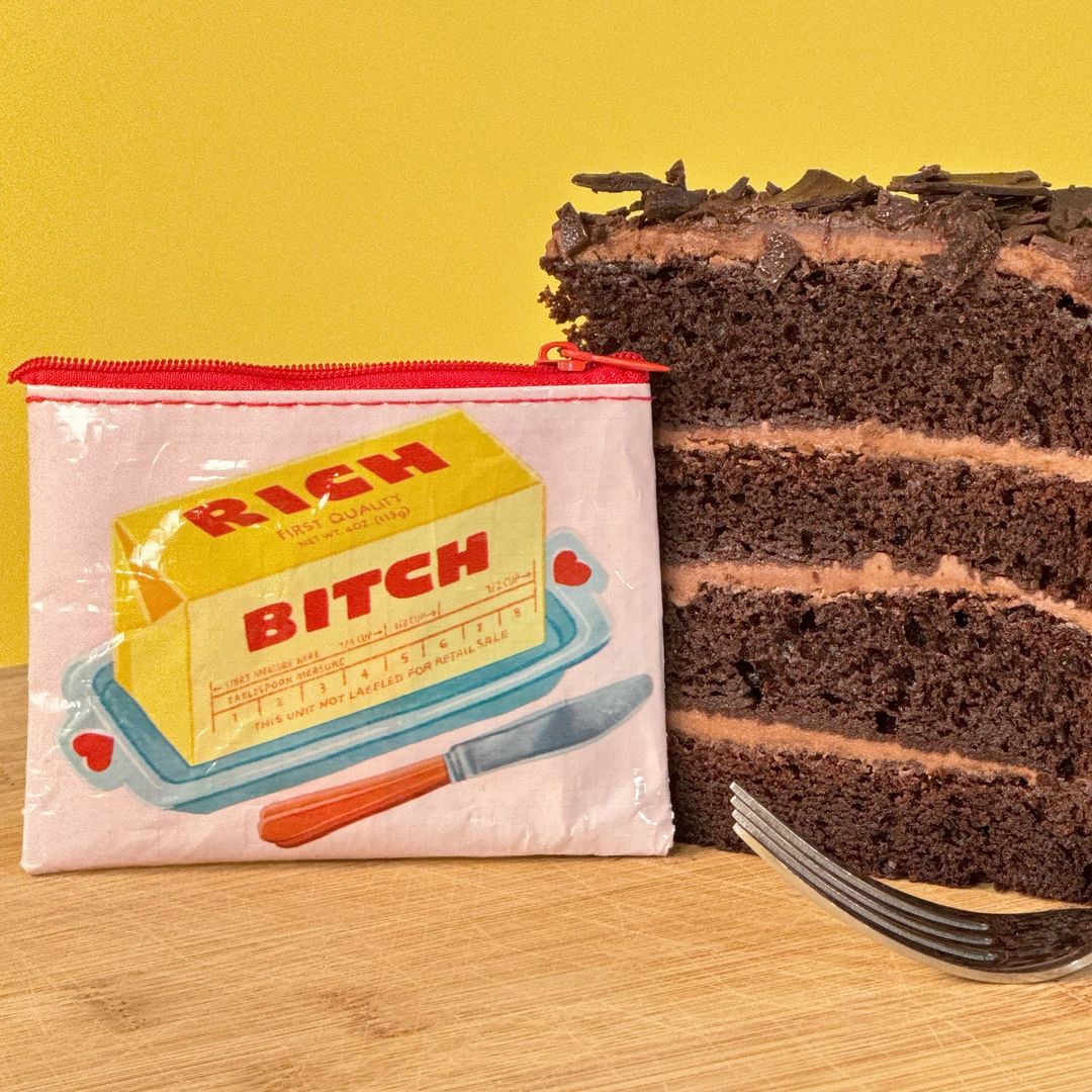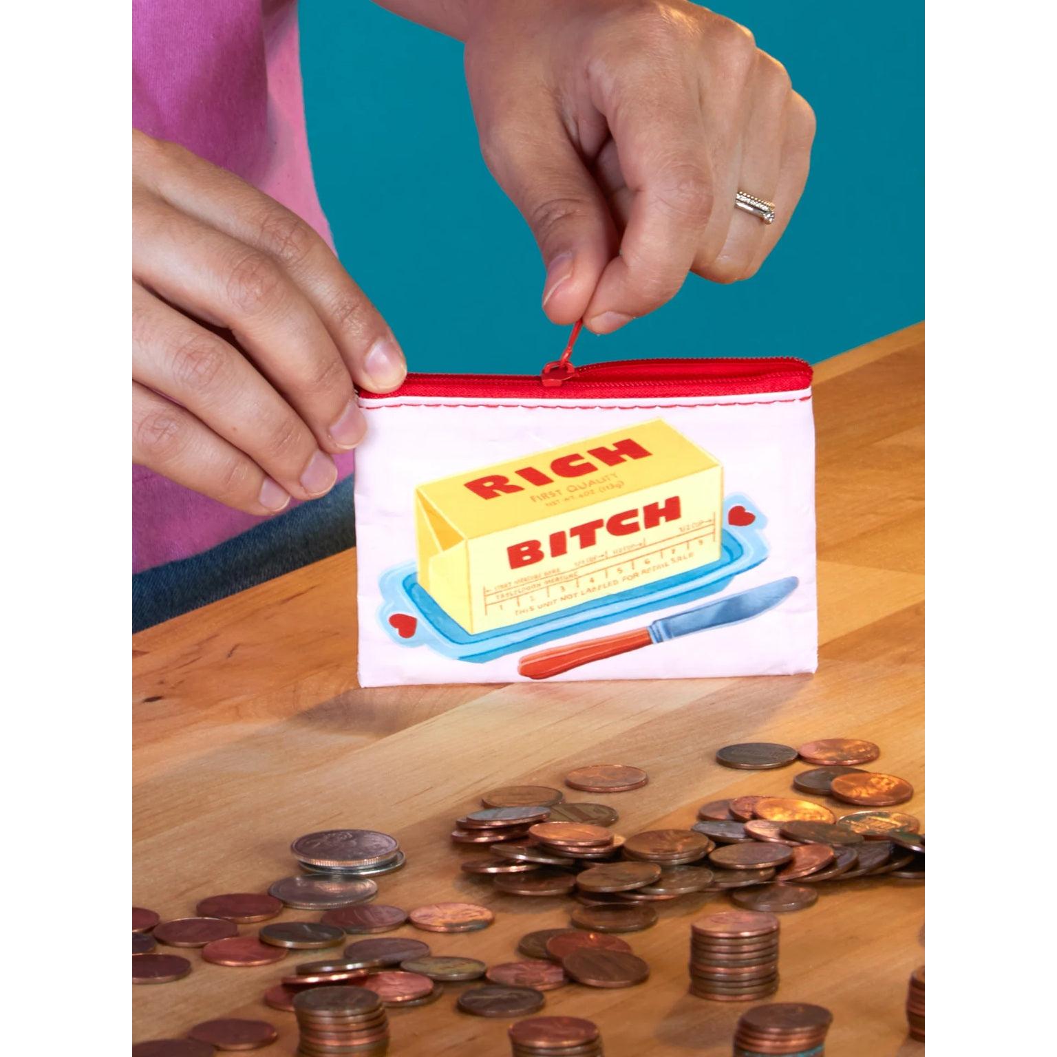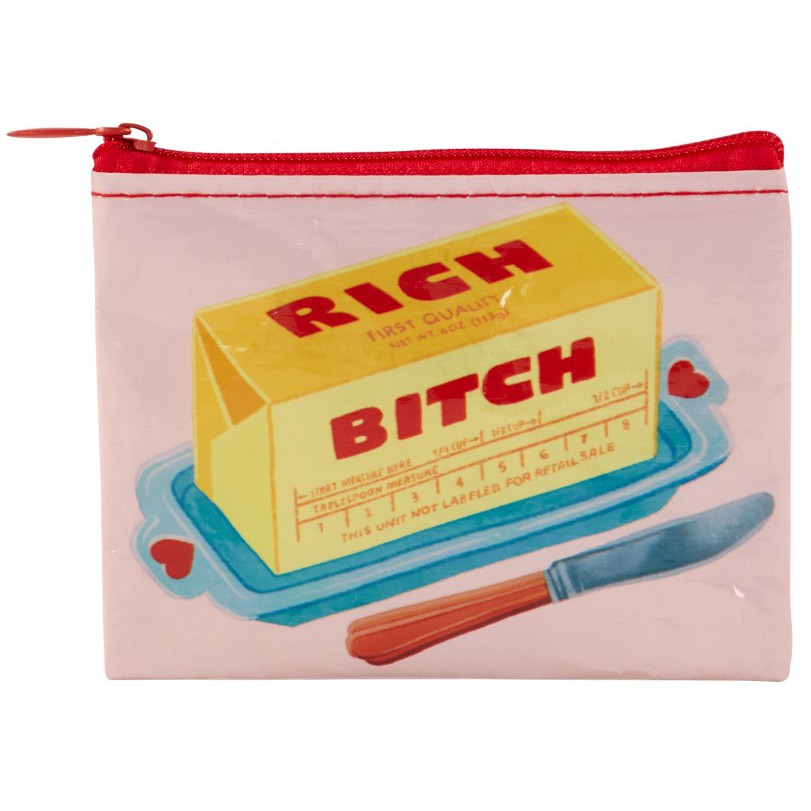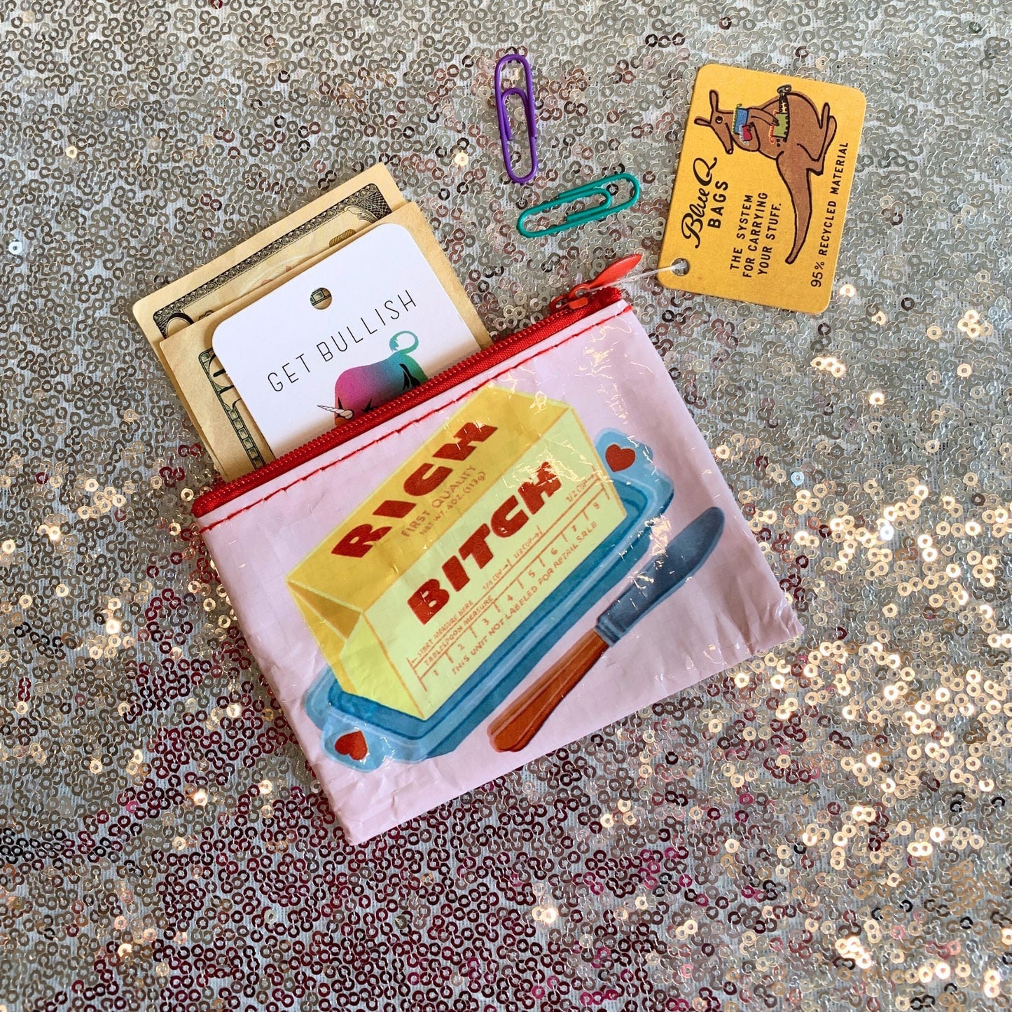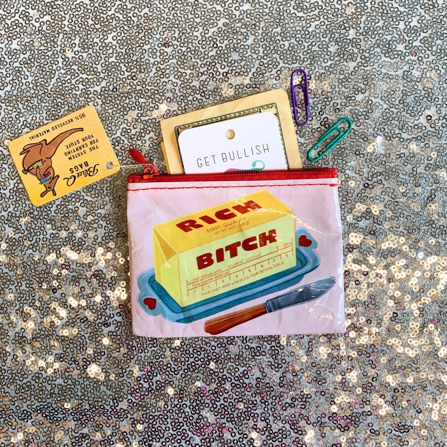 Rich Bitch Butter Coin Purse in Pink | 3"h x 4"w | BlueQ at GetBullishLow stock: 2 left