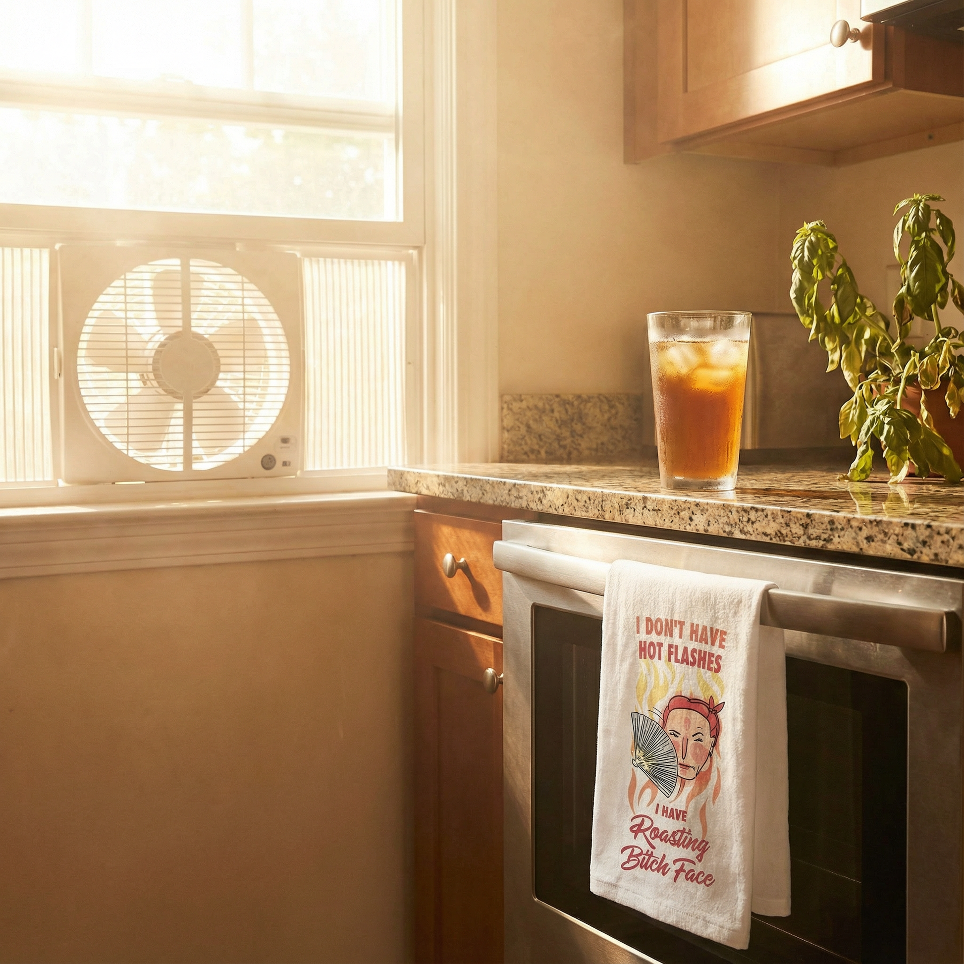 Hot Flashes Roasting Bitch Face Dishtowel | Hangable Sweary Funny Saying Cotton TowelLow stock: 2 left