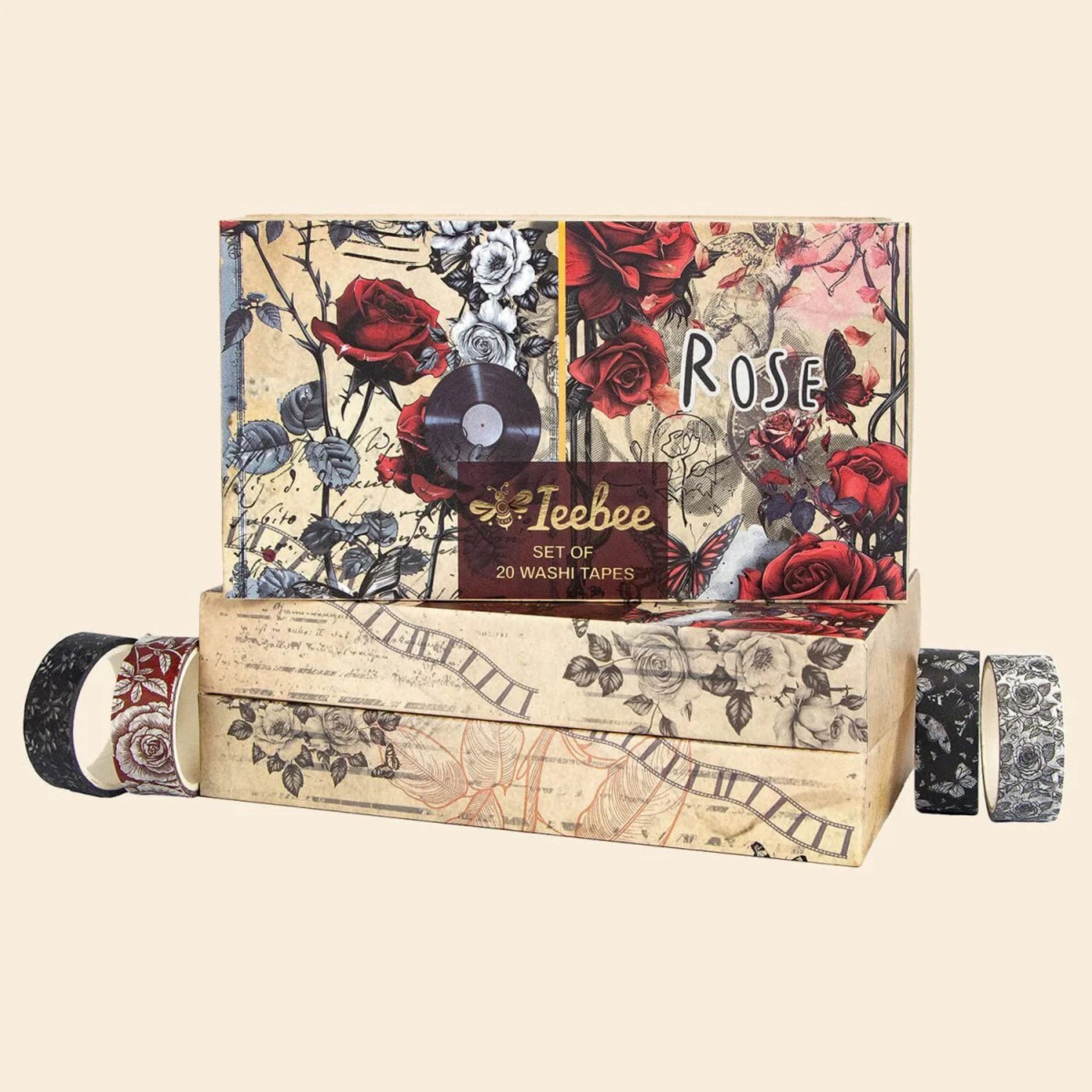 Rose Reverie Washi Tape Set | 20 Rolls Floral Tapes for Journals, Planners & Scrapbooking