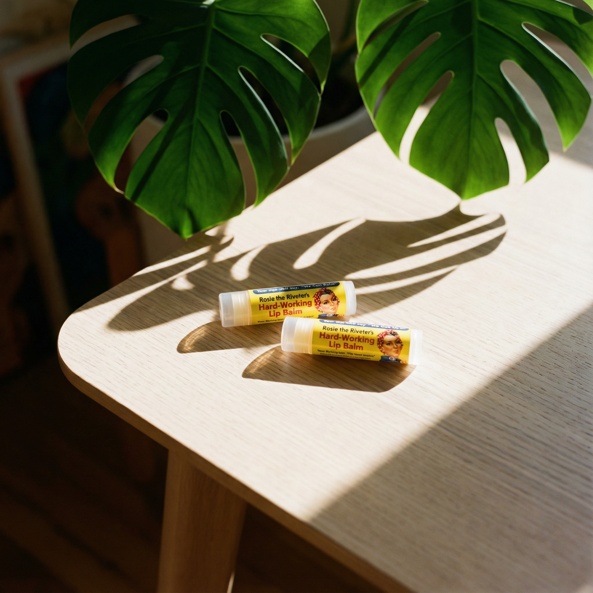 Pucker up with Rosie the Riveter's Hard-Working Lip Balm in refreshing peppermint flavor - a moisturizing lip gloss that's perfect for on-the-go touch-ups. Whether you're a history buff or just in need of some serious hydration, this iconic lip balm makes a thoughtful gift for fans of the famous feminist icon.