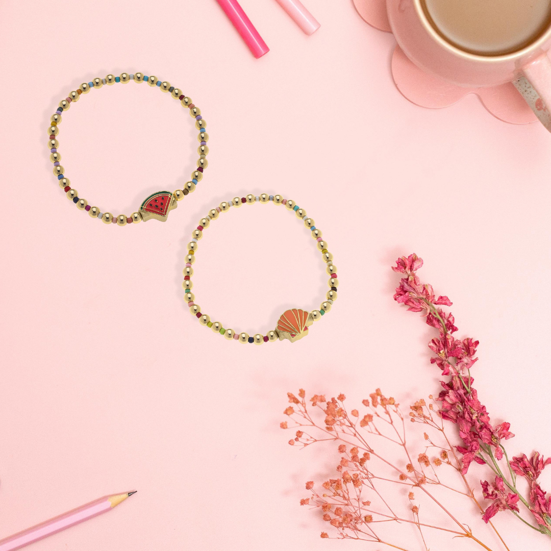 Kids Roxy Rainbow Beaded Children’s Bracelet with Cute Charm | Watermelon or SeashellLow stock: 1 left