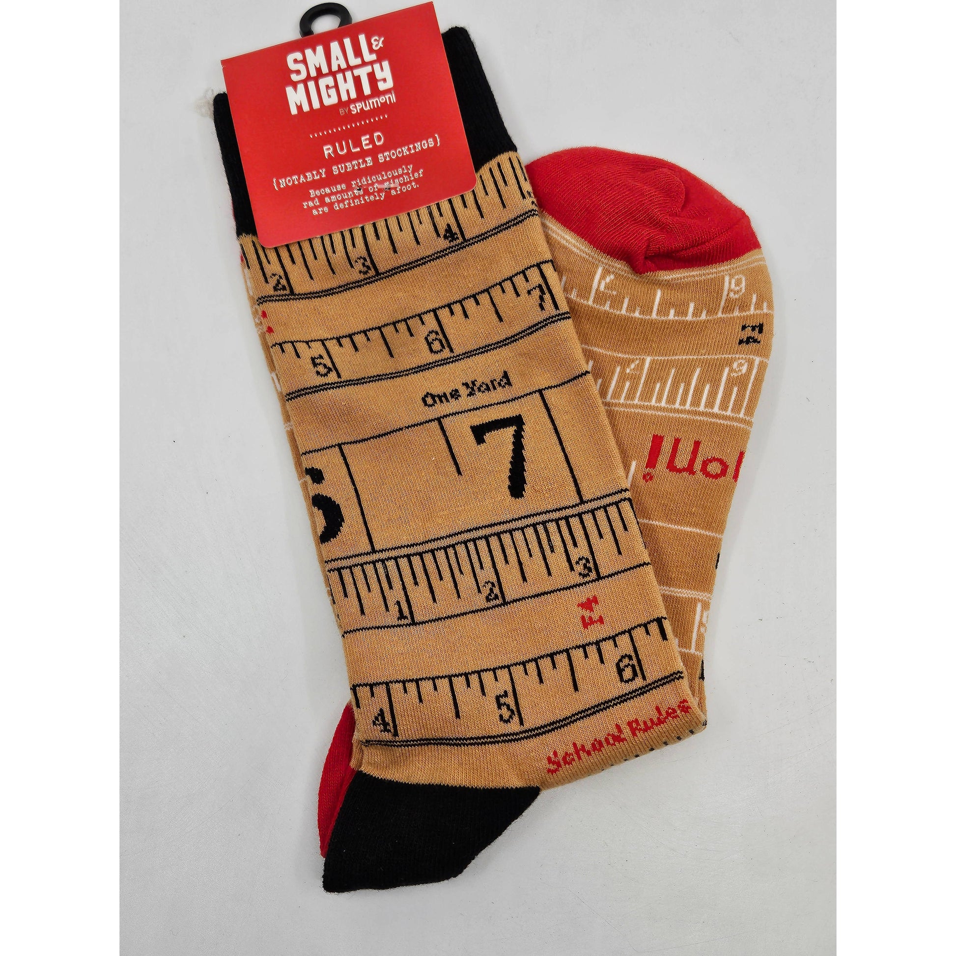 Retro school rules themed socks are so cute for anyone who's still a kid at heart. Vintage ruler motif on manila colored background.