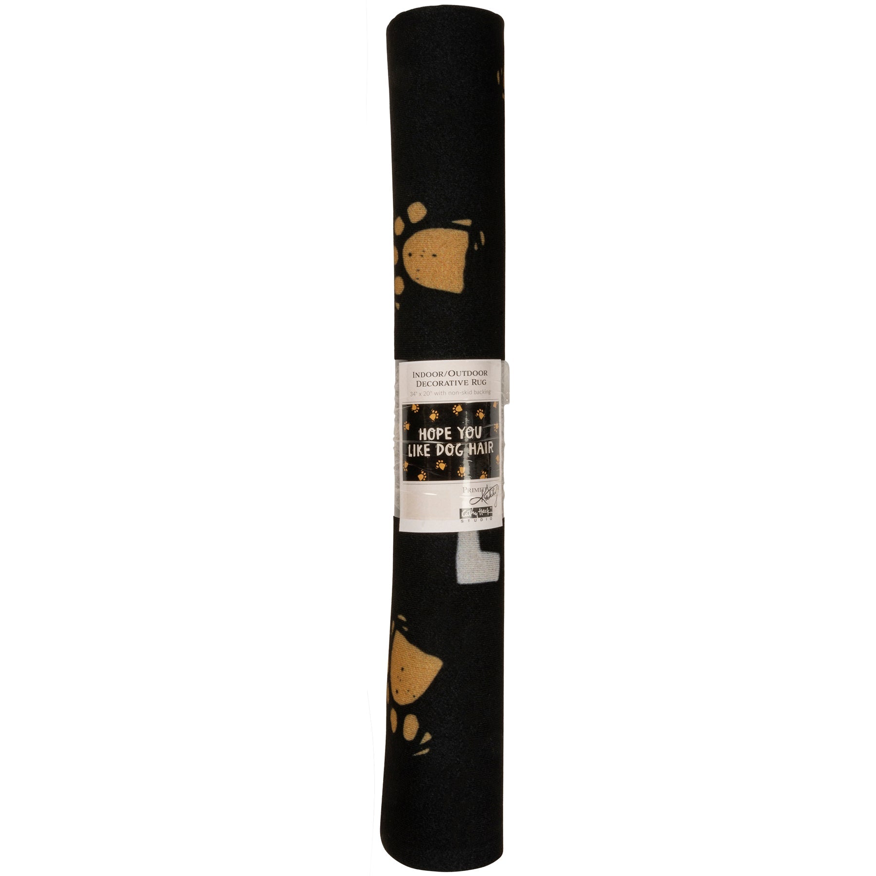 A polyester doormat or small rug featuring block print paw print designs and the phrase "Hope You Like Dog Hair". You can't say your guests weren't warned!