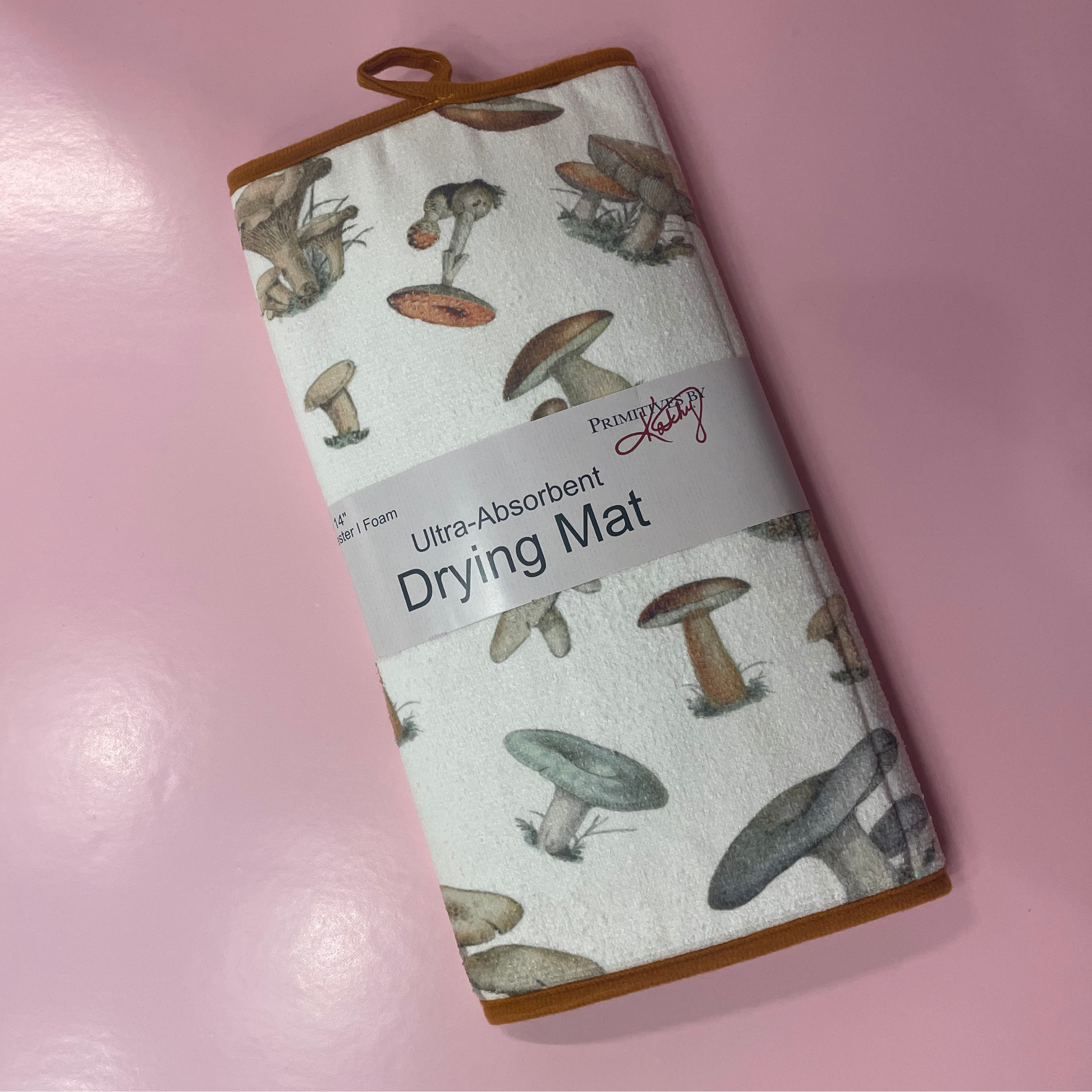 This Shiitake drying mat includes a hanger at the top to display design or to air dry when not in use. Drying mat conveniently folds up for easy storage. Machine-washable for easy cleaning.