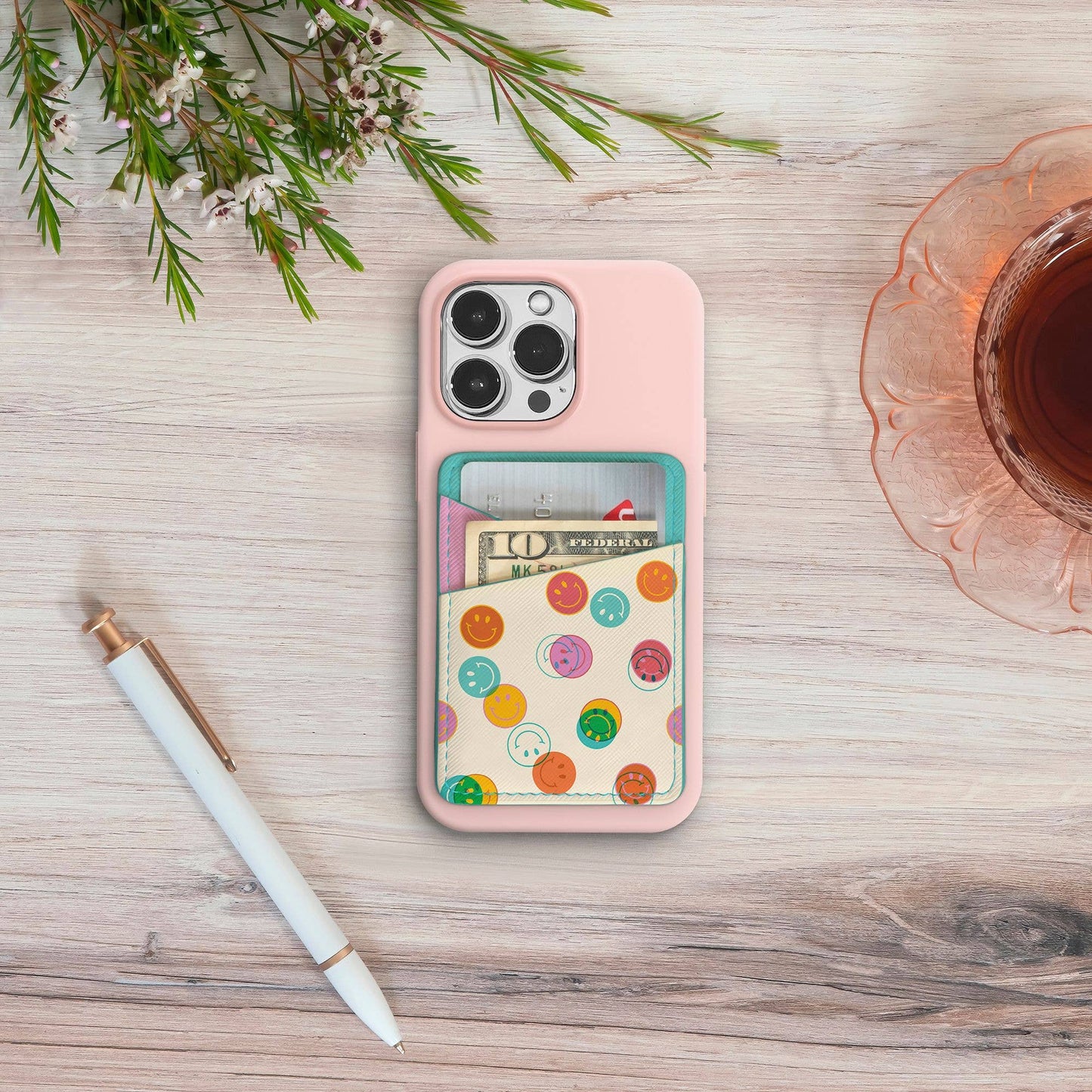 Keep your most valuable personal items in one place with this Smiley Trails Stick-On Cell Phone Wallet!