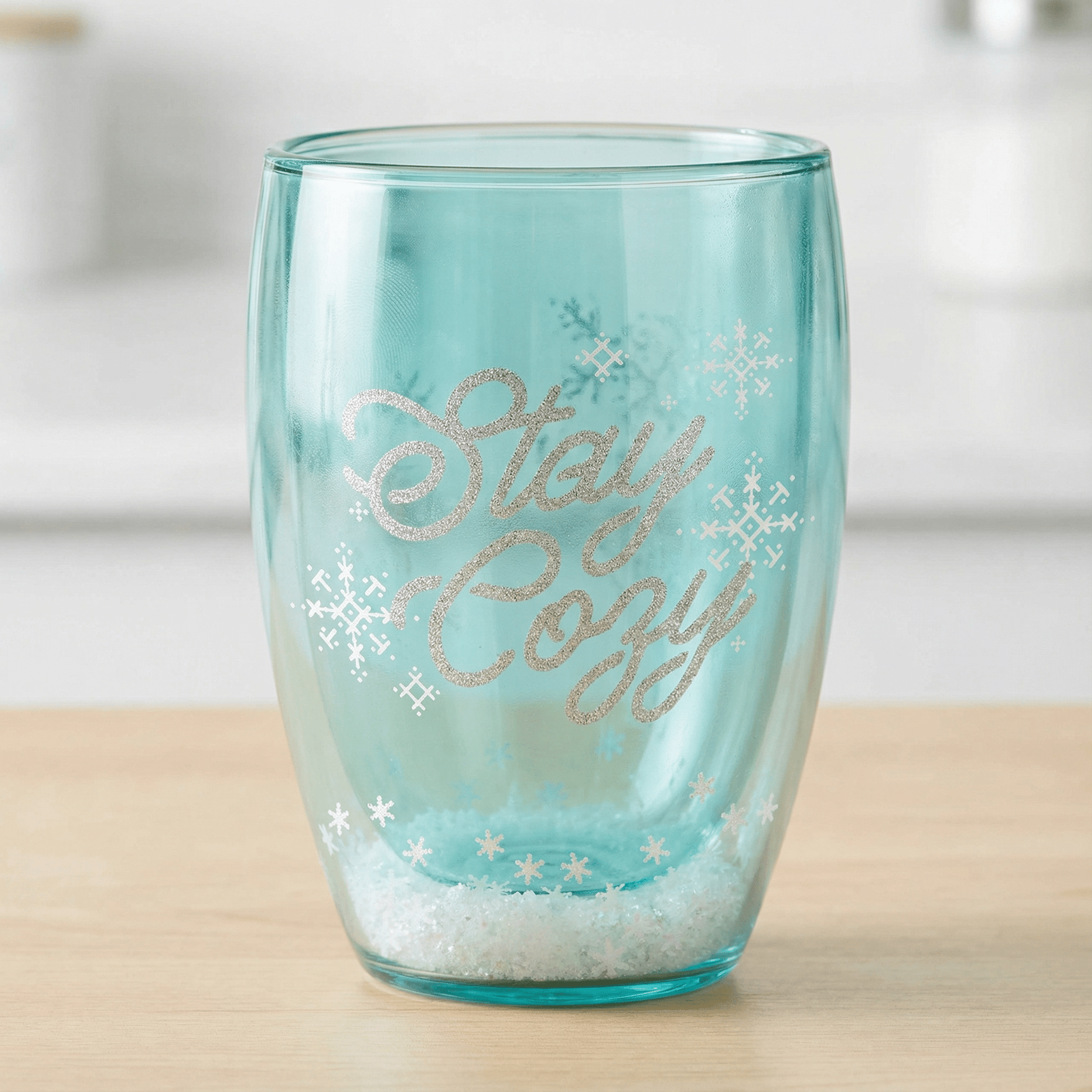 Stay Cozy Double-Wall Stemless Glass | Snowflake Holiday Drinkware | 10oz