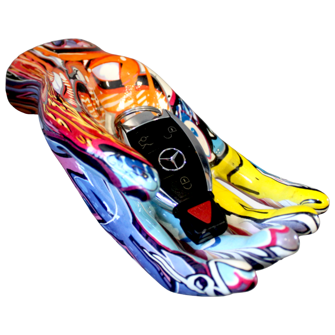 Add instant personality to your space with the Street Art Hand Out Wall Mount Sculpture. Inspired by bold street art and graffiti culture, this colorful wall-mounted hand extends outward in an open-palm gesture—inviting, expressive, and undeniably cool.