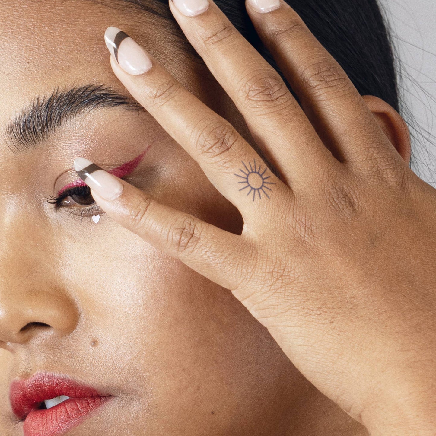 Unlike most temp tattoos, Inkbox works by sinking into your skin and doesn’t just stick on top. These tattoos are painless and super easy to apply - there are only a few steps involved! Once applied, the ink reacts with the proteins and keratin in your skin and darkens over 24-36 hours.
