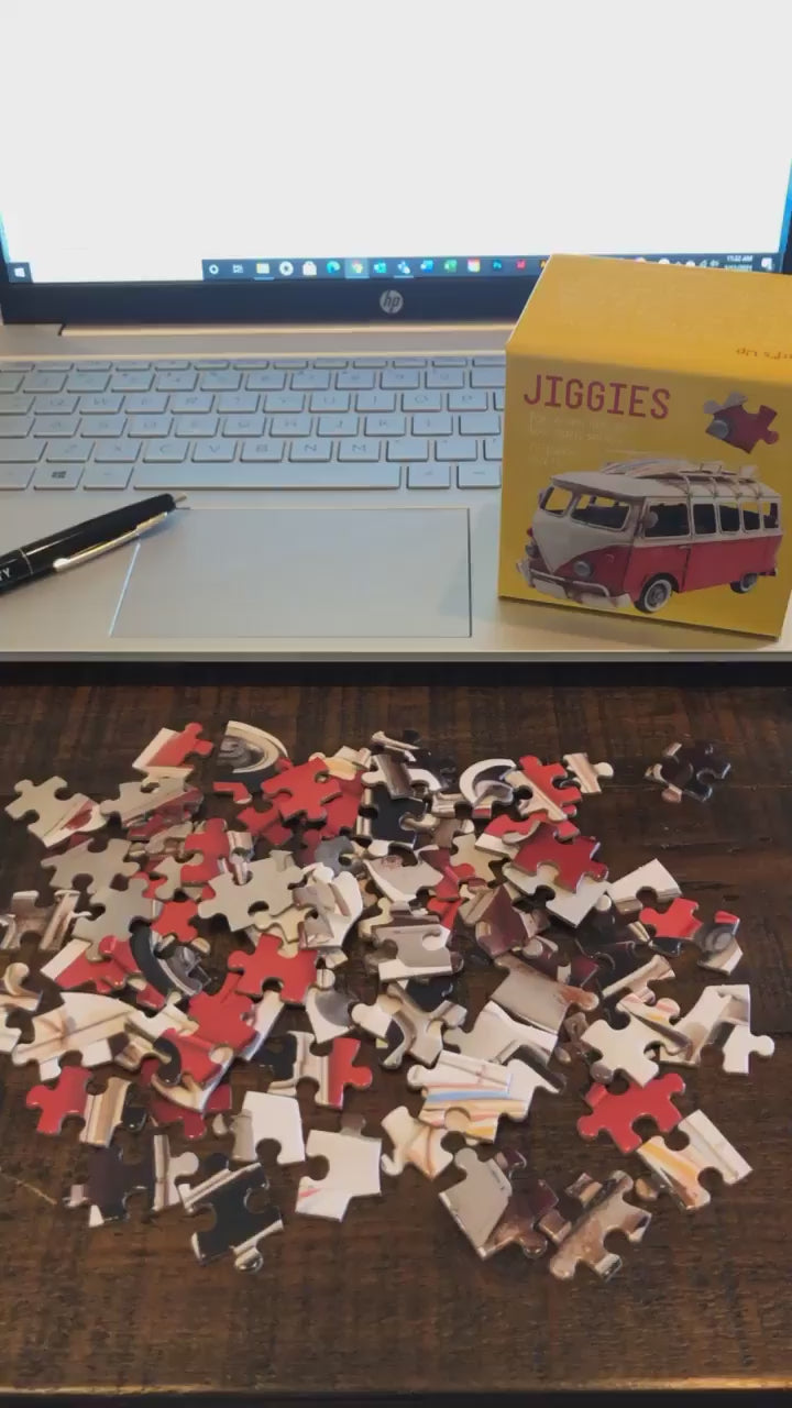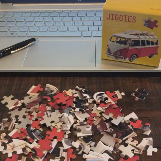 Surf's Up Jiggie Puzzle | Surf Camper Van Shaped Puzzle in Gift Box | Stocking Stuffer Mini Puzzle | 77 Pieces