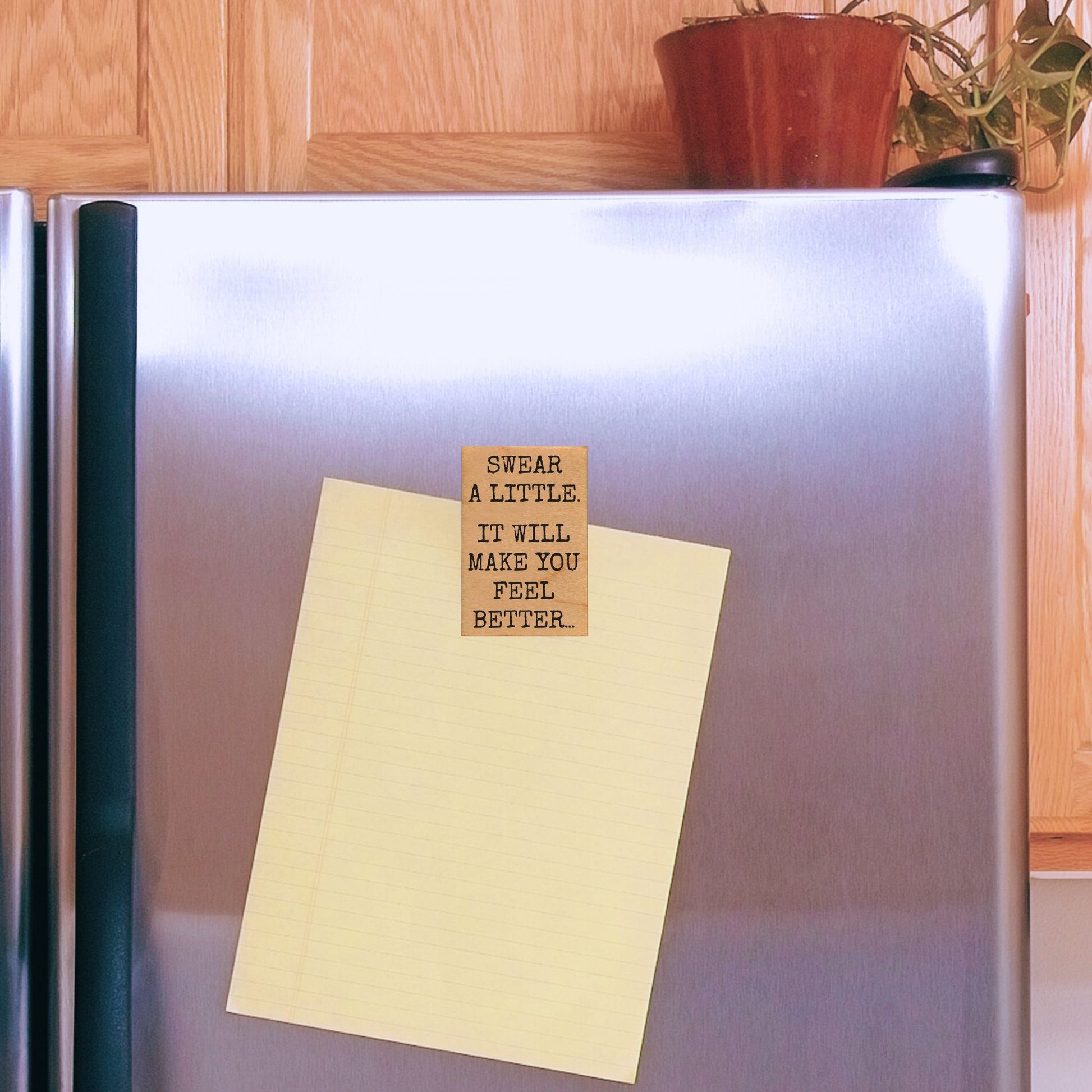 Swear A Little It Will Make You Feel Better Wood Magnet | Funny Quote Fridge Magnet | Wood Refrigerator Magnet Gift