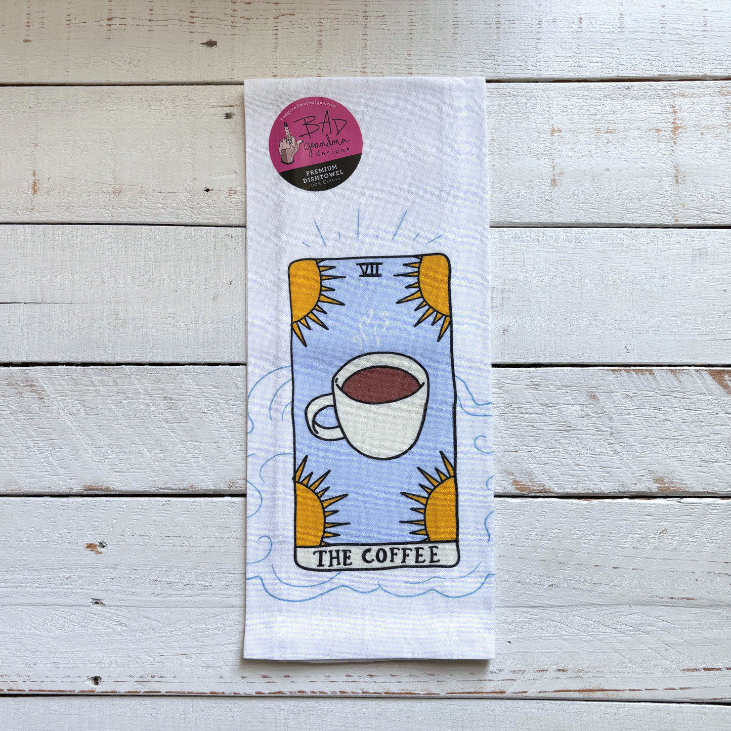Add some fun to your kitchen with THE COFFEE Kitchen Tarot Dishtowel!