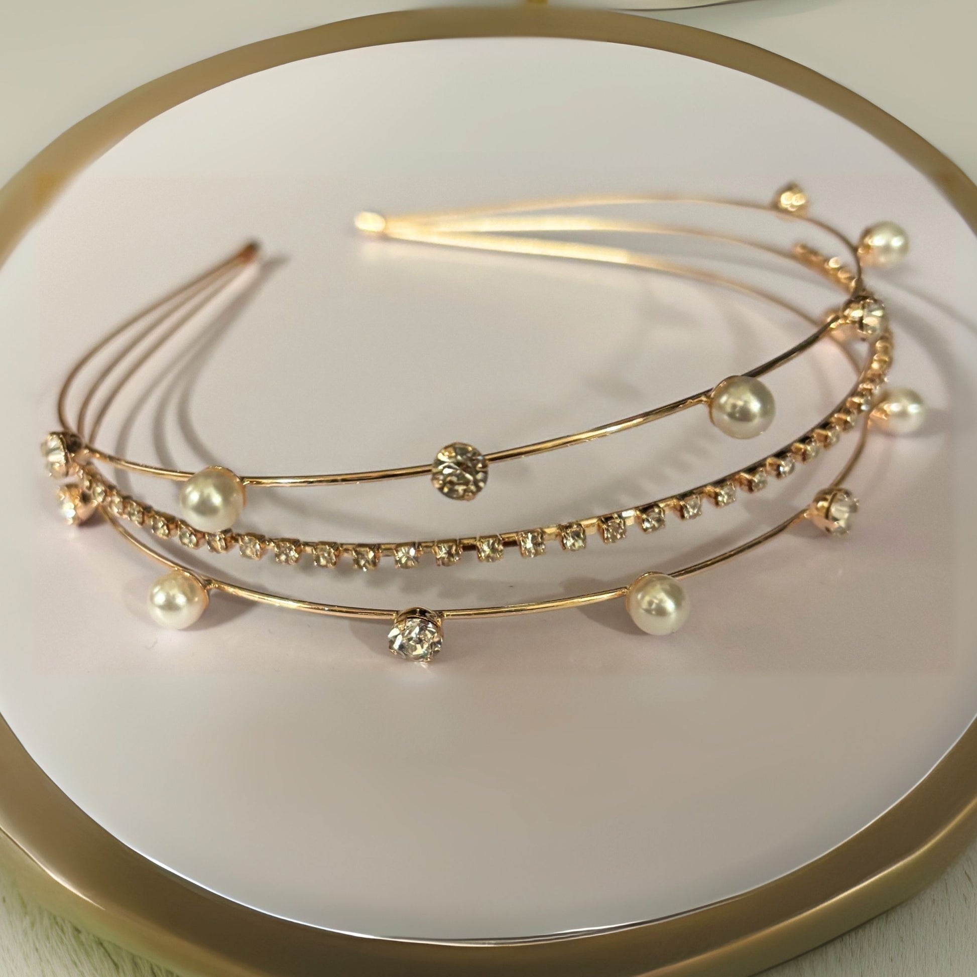 Three Strand Jeweled Headband Tiara | Party or Bridal Hair Accessory [Available in Gold or Silver]Low stock: 3 left