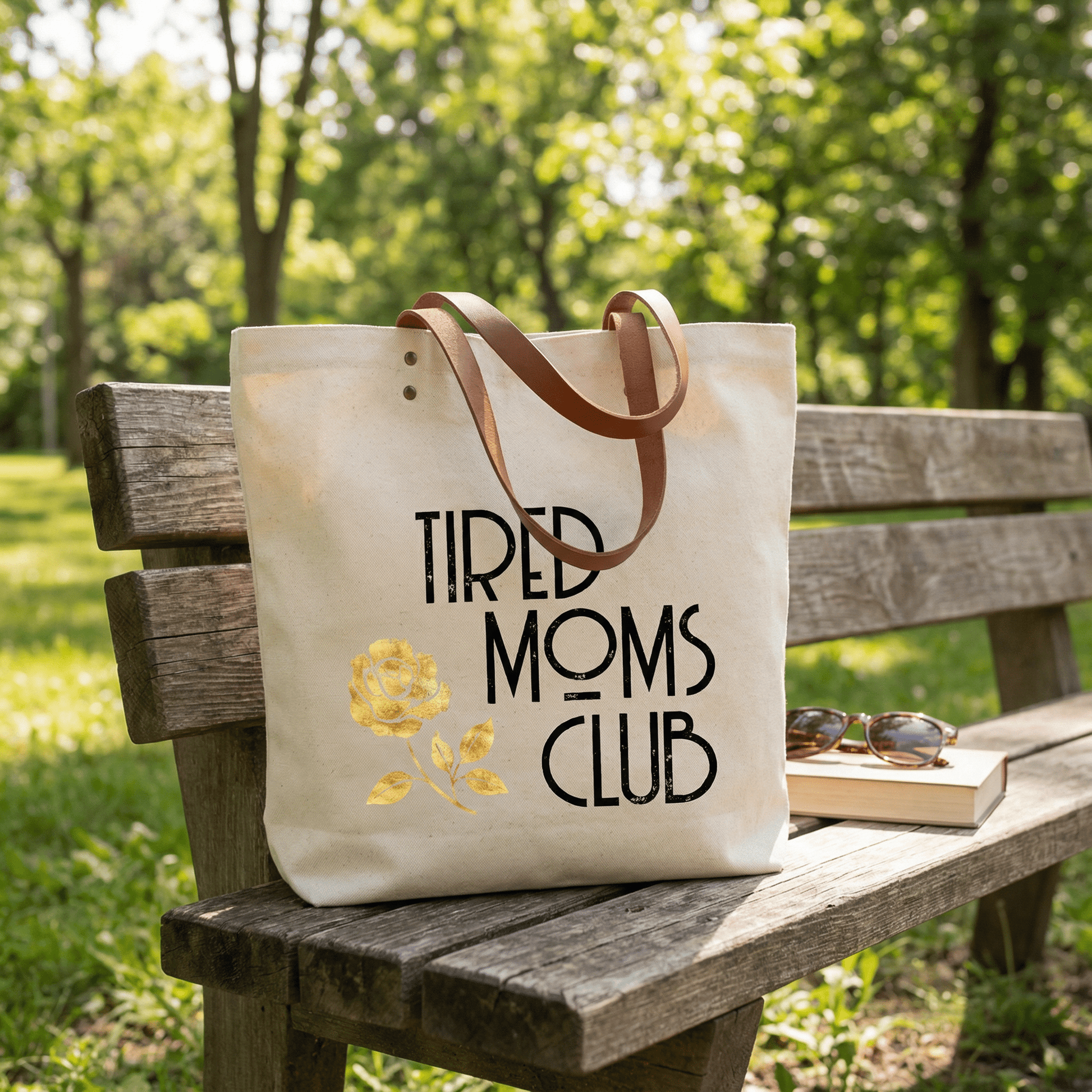 Fun Club Tired Moms Club Canvas Tote Bag | Vegan Leather HandlesLow stock: 1 left