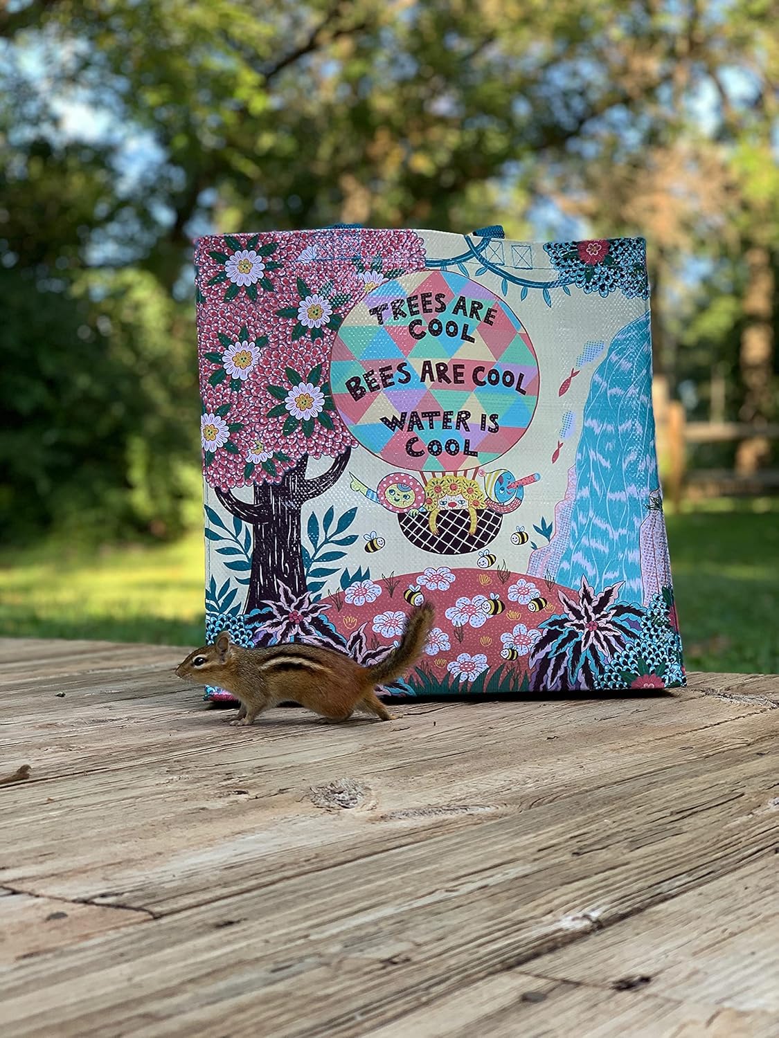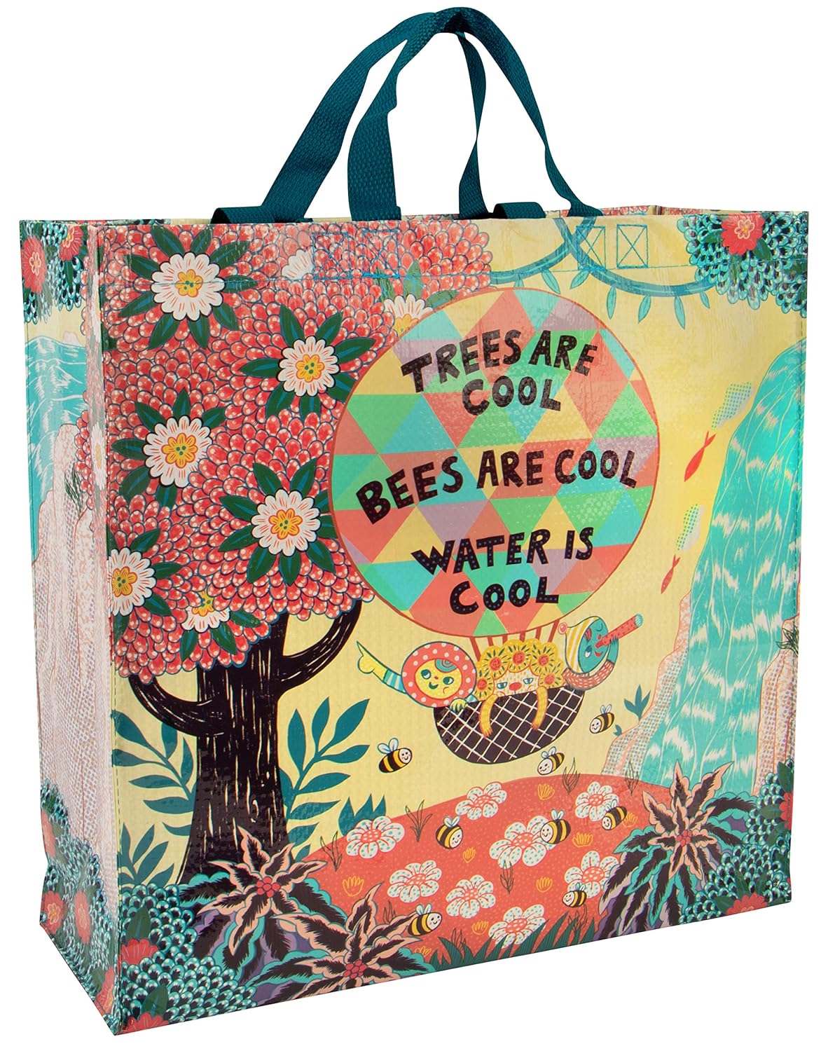 Trees Are Cool. Bees Are Cool. Water Is Cool. Shopper Tote Bag | Post Consumer Material Shopping Bag | 16" x 15" | BlueQ at GetBullish