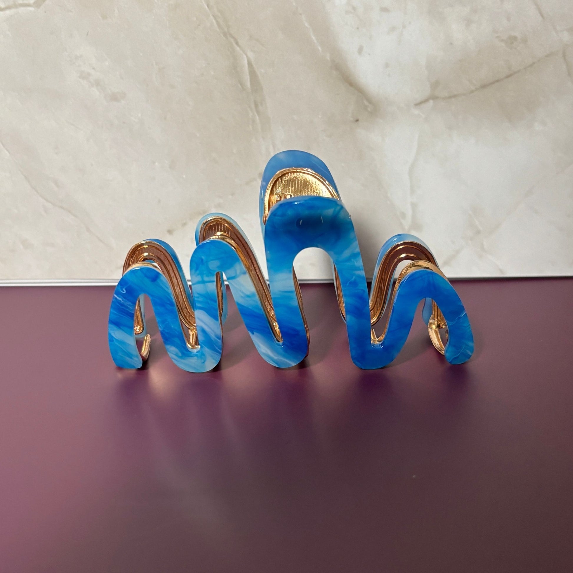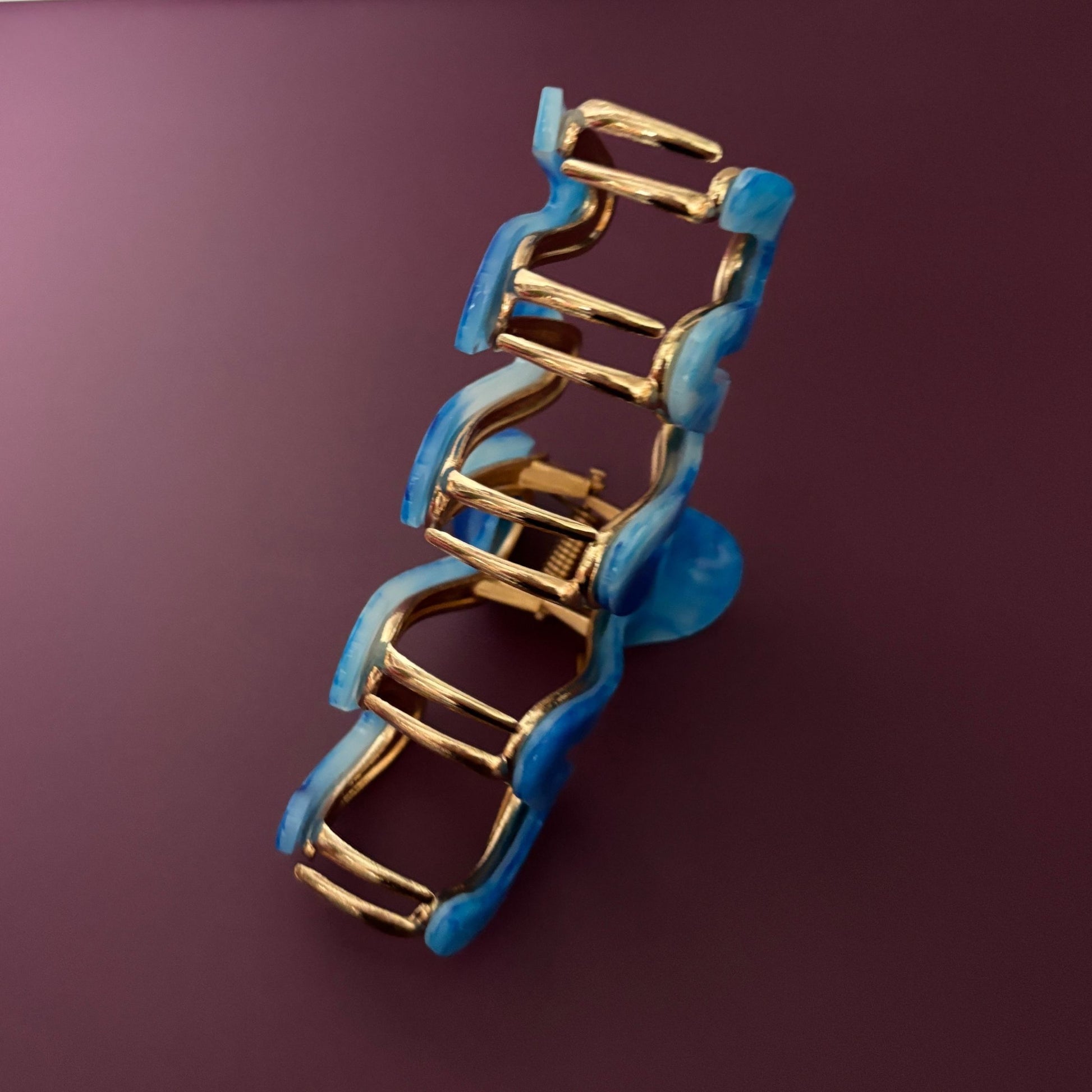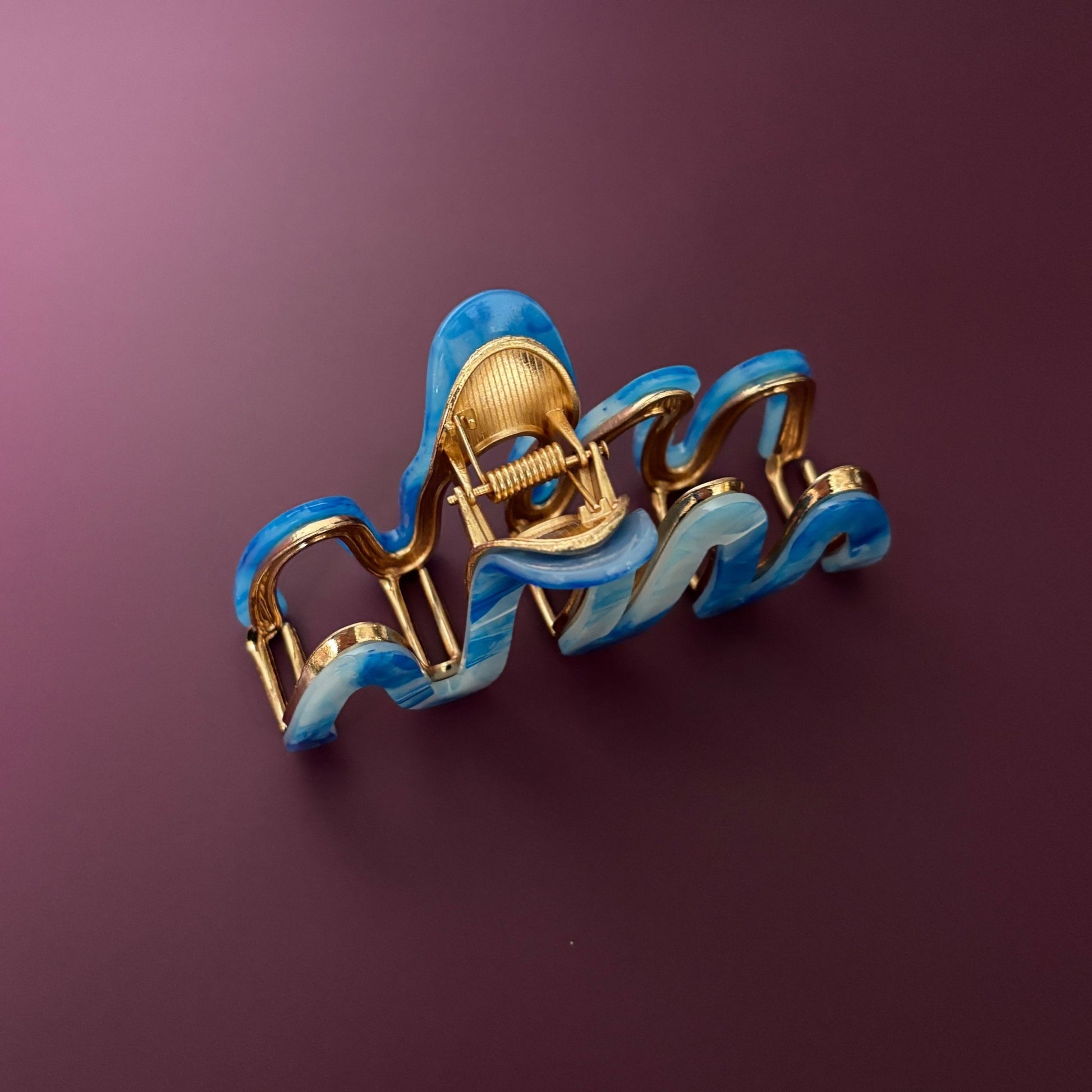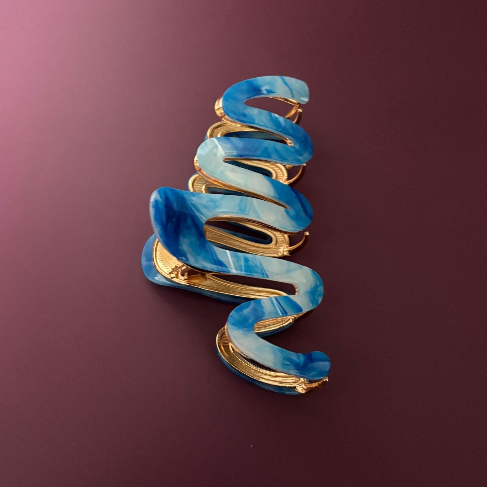 Velvet Claws Hair Clip | '80s Squiggle in Azure Sky | Claw Clip in Velvet Travel Bag