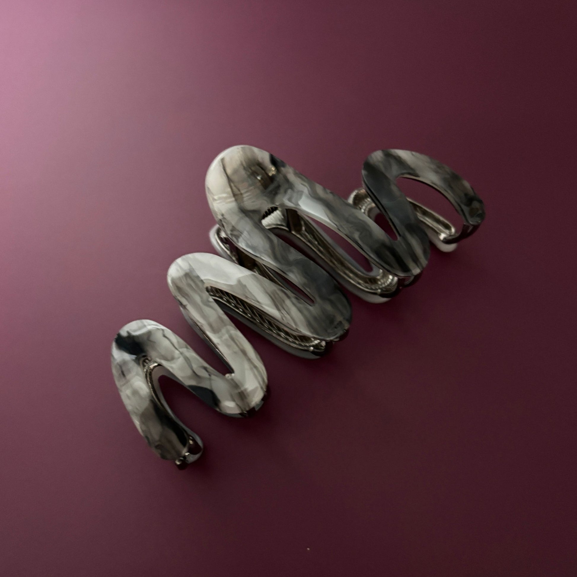 Velvet Claws Hair Clip | '80s Squiggle in Professional Marble | Claw Clip in Velvet Travel Bag