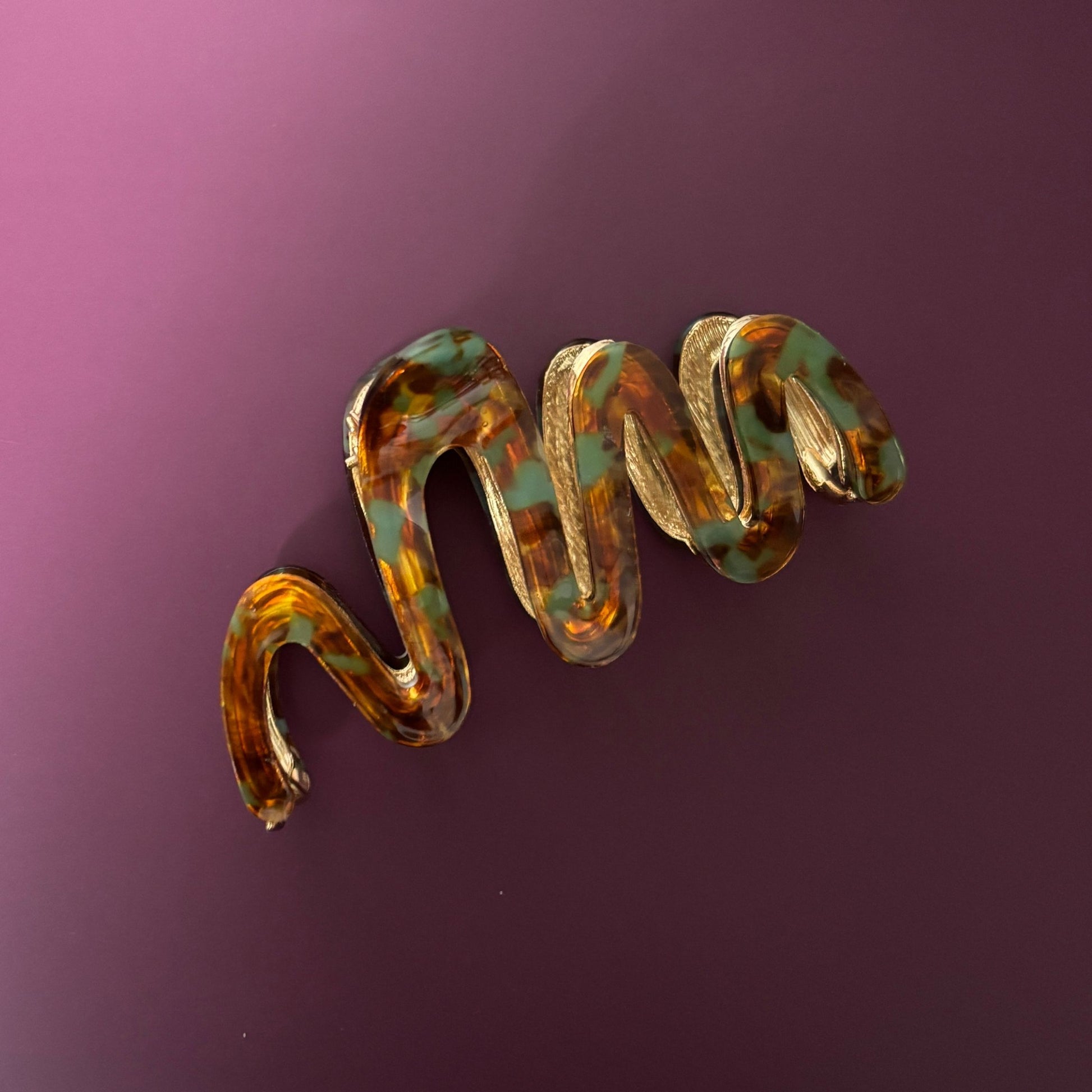 Velvet Claws Hair Clip | '80s Squiggle in Tortoise Sage | Claw Clip in Velvet Travel Bag