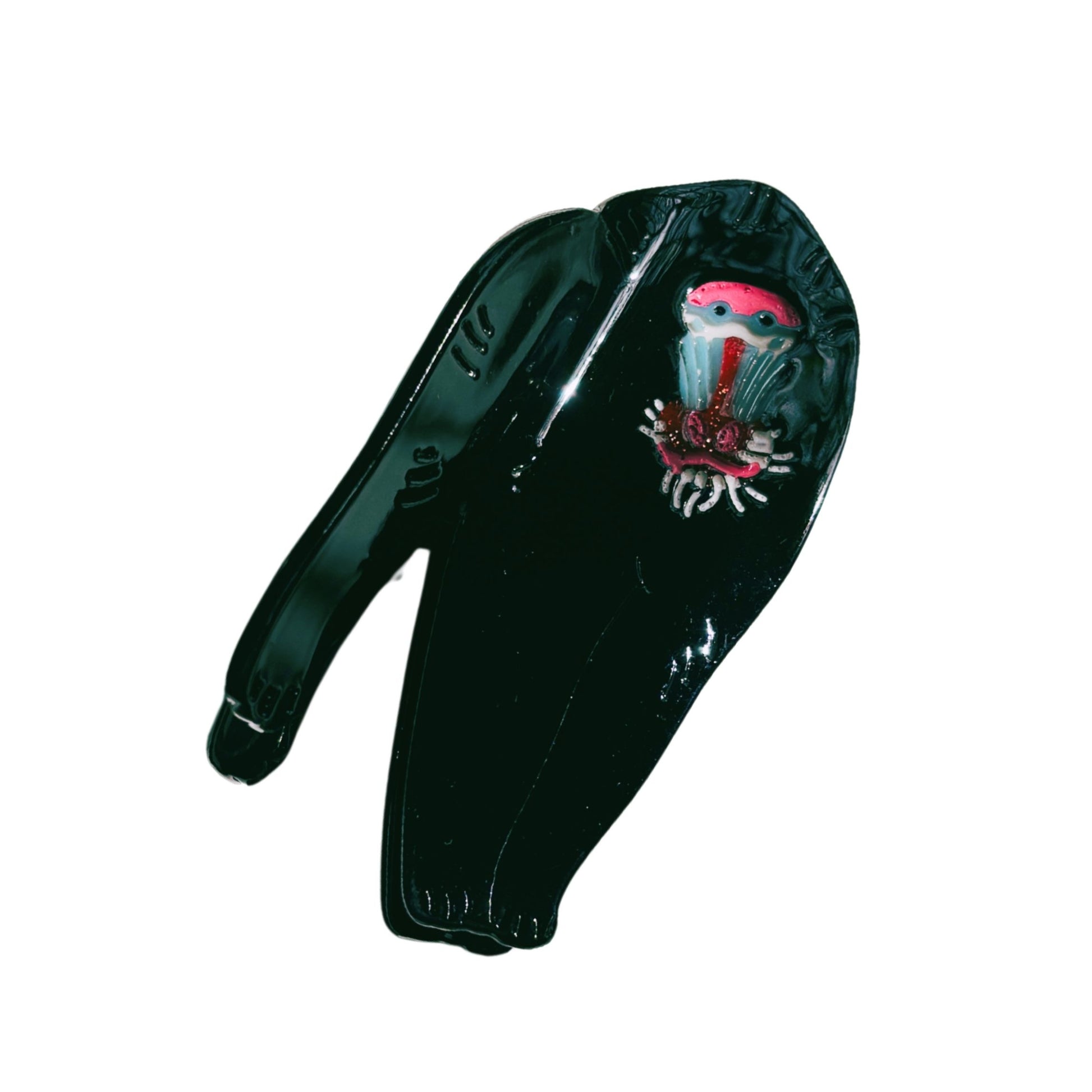 Add a bold touch to your hairstyle with this Mandrill Ape Hair Claw in sleek black—because nothing says “secure hold” like a primate known for its powerful grip. Fun fact: mandrills have fangs longer than a lion’s, but don’t worry—this one just wants to keep your hair in place, not scare off your coworkers.