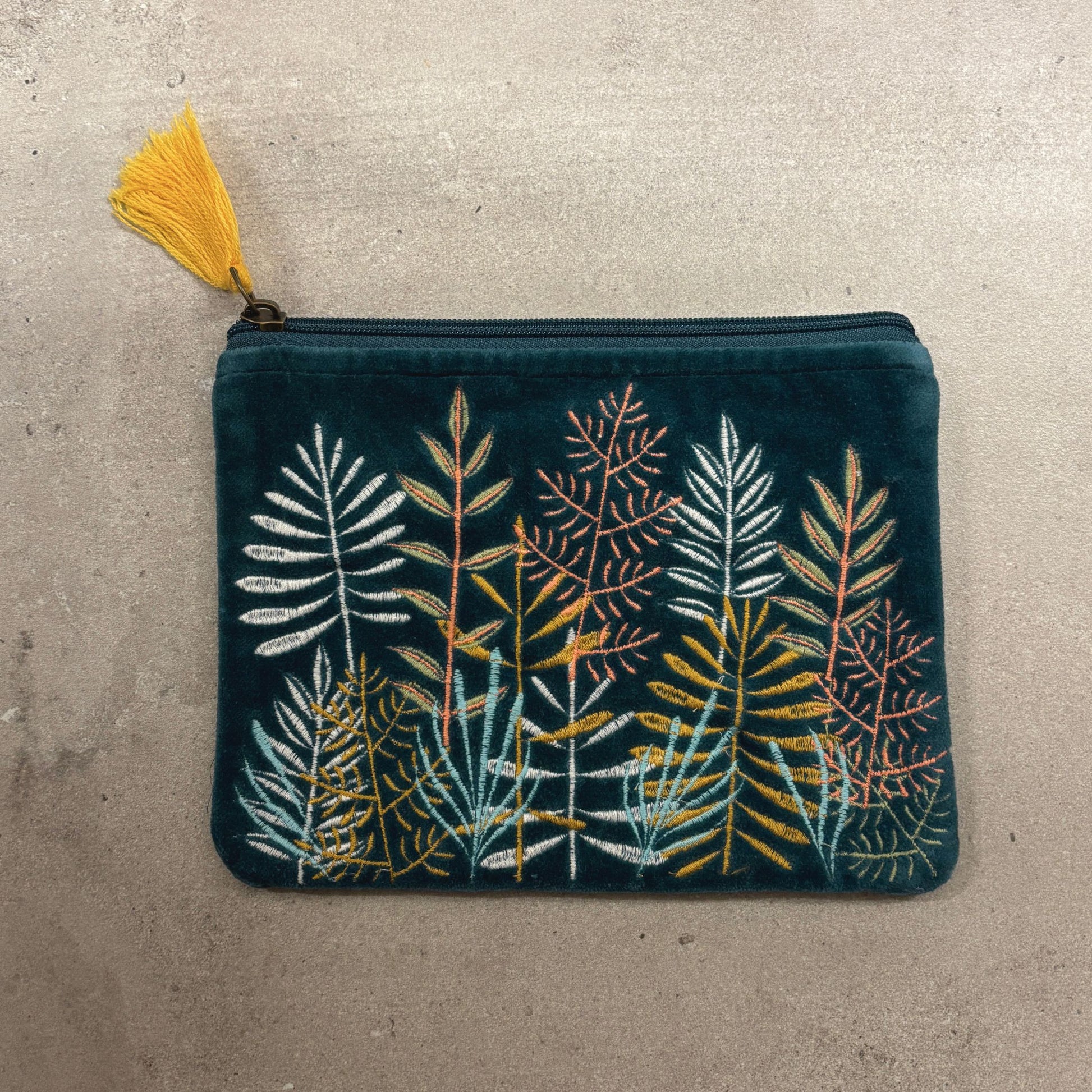 Velvet Leaf Garden Coin Purse | Embroidered Cotton Pouch & Nature-Inspired Gift for HerLow stock: 2 left