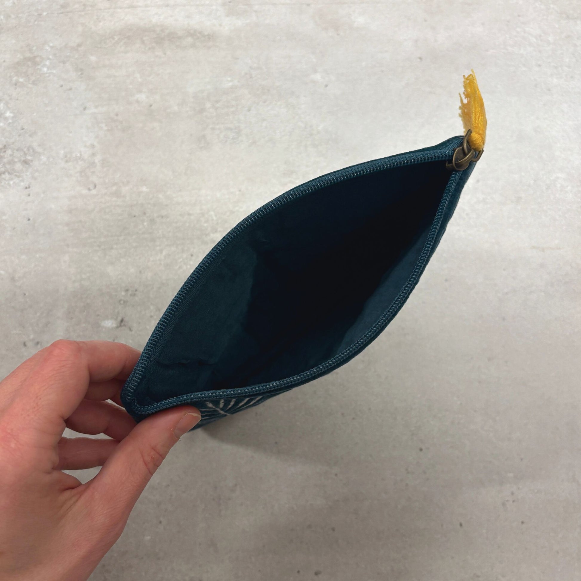 The Velvet Leaf Garden Coin Purse 🍃 is a cozy cotton pouch with an embroidered botanical design and a smooth zipper closure.