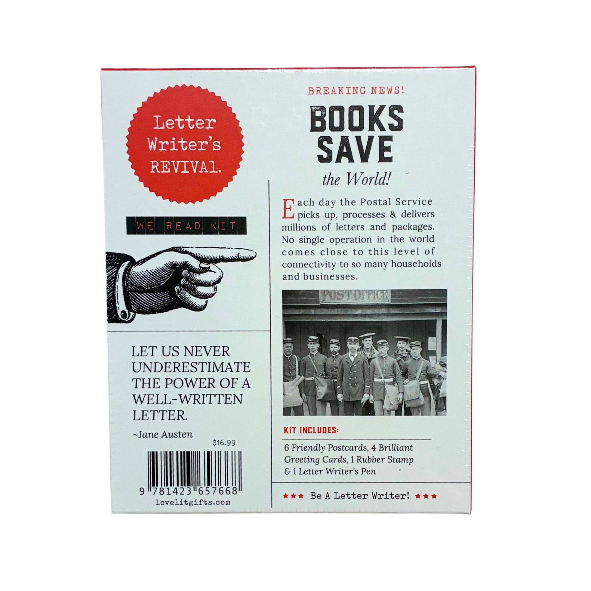 Letter Writer's Stationery Set "We Read Kit" | Letter-Writing Kit with Greeting Cards, Postcards, Pen, Rubber Stamp