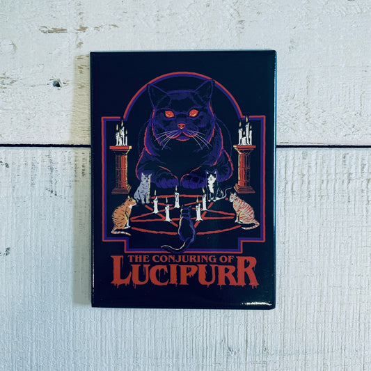 The Conjuring of Lucipurr Magnet | '80s Children's Book Style Satirical Art by Steven Rhodes