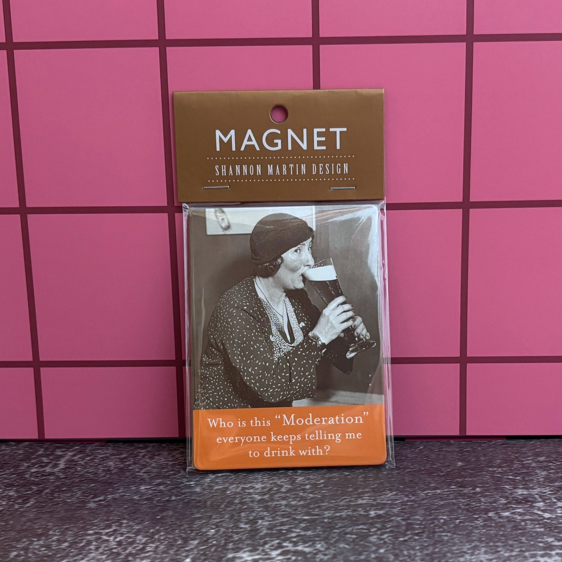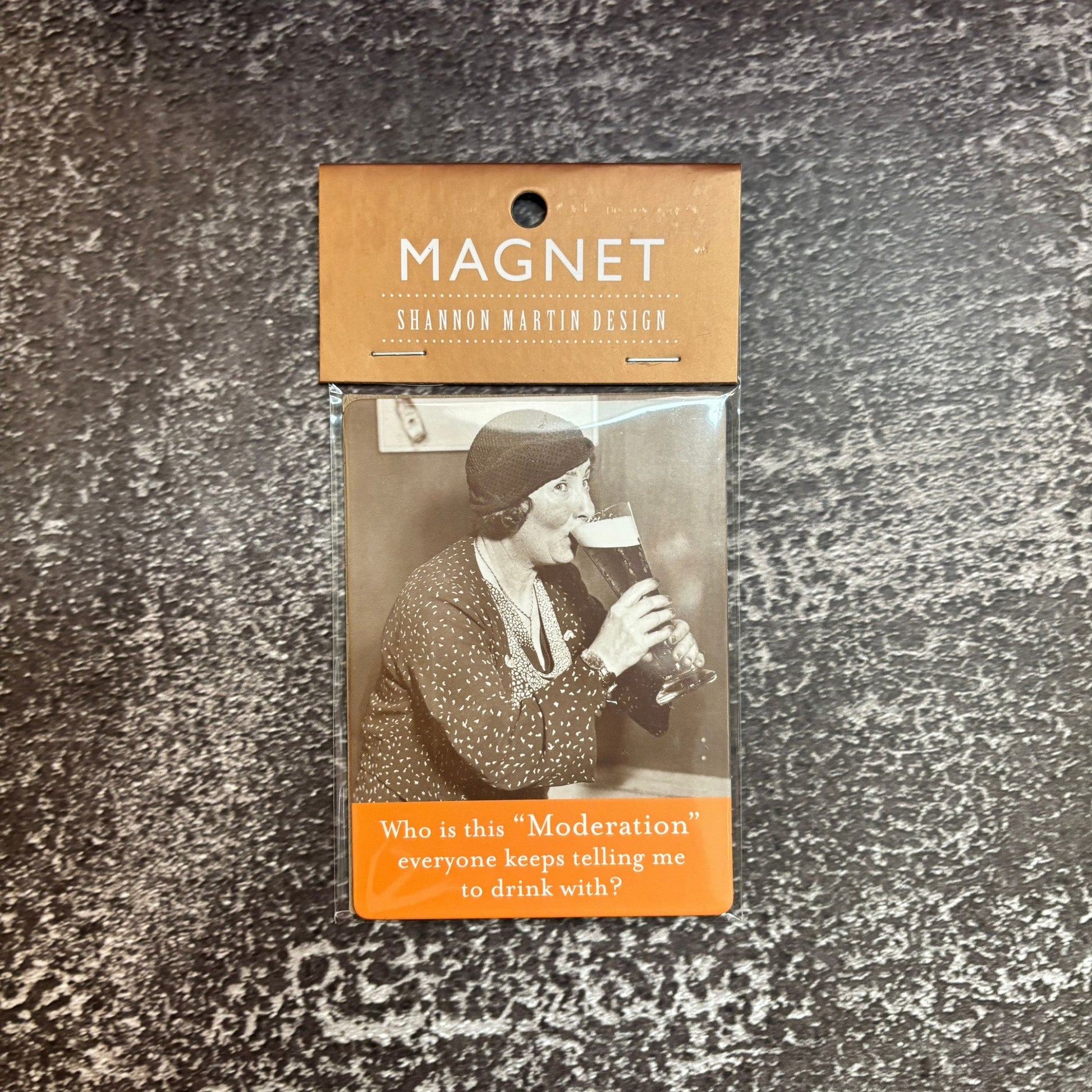 Add a touch of humor to your fridge or filing cabinet with the "Who is This Moderation Everyone Keeps Telling Me to Drink With" rectangle magnet by Shannon Martin Design. Measuring 2.63 x 3.5 x 0.06 inches, this thin yet sturdy magnet is perfect for slipping inside a greeting card to brighten someone's day. Looking for more funny refrigerator magnets? Check out our selection of witty designs that are sure to bring a smile to your face.