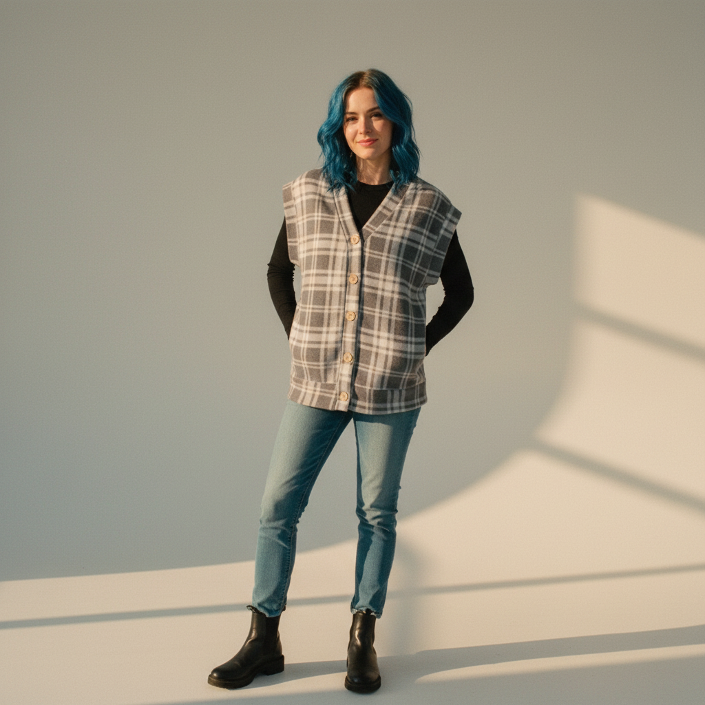 Whether you’re dressing up for brunch or adding warmth to your everyday look, this fuzzy plaid vest delivers a perfect mix of comfort and style.